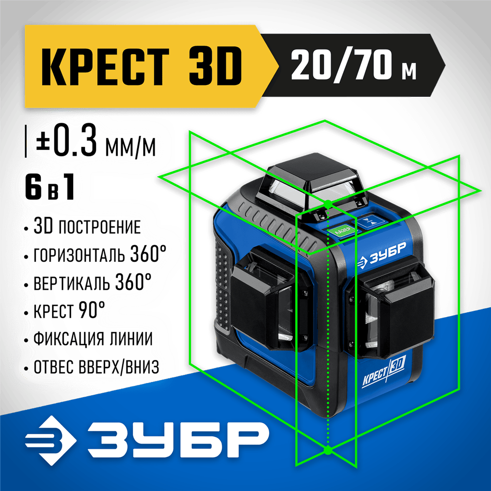 ЗУБР КРЕСТ 3D лазерный нивелир Профессионал (34909)