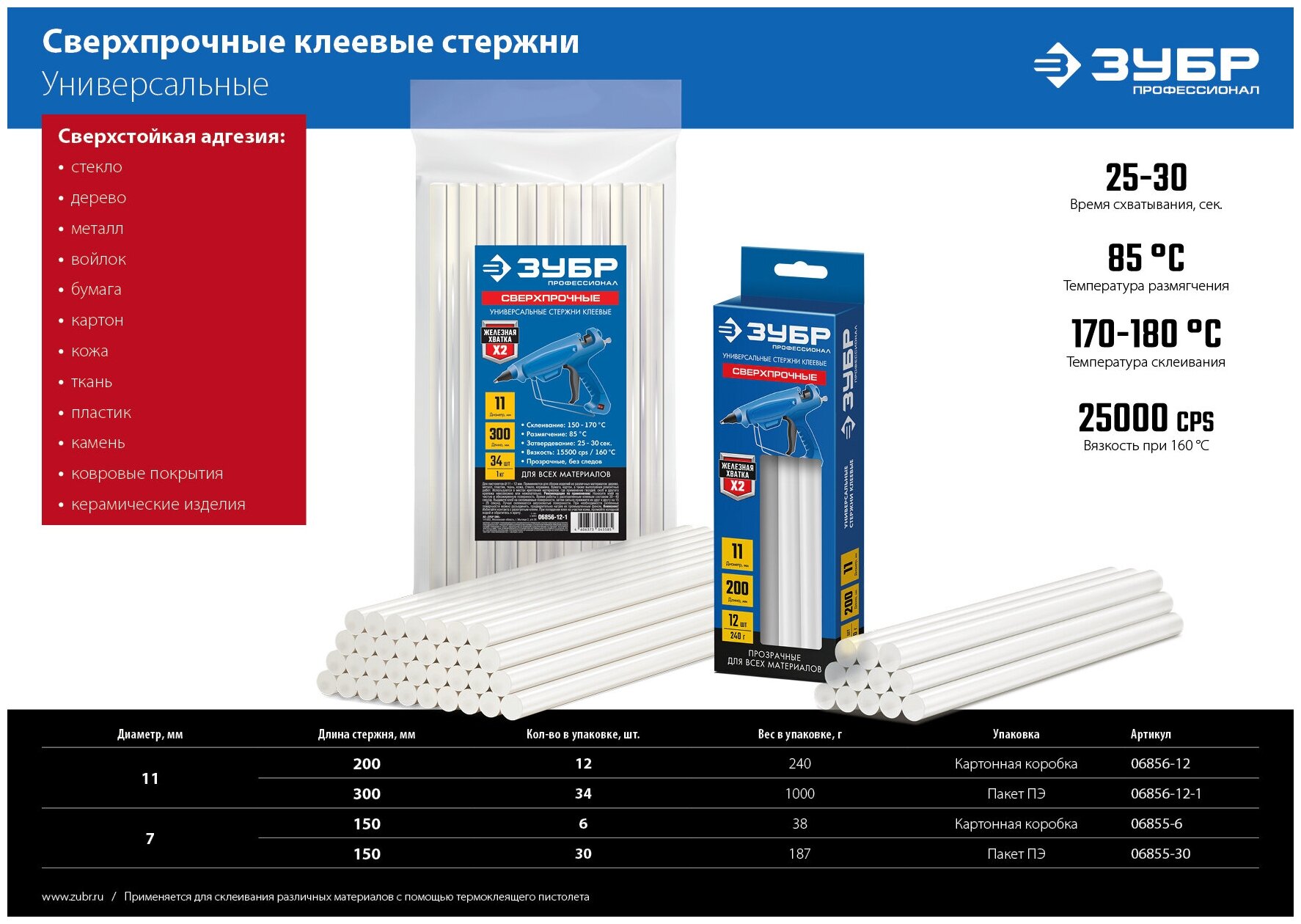 ЗУБР 7 х 150 мм 6 шт сверхпрочные прозрачные клеевые стержни Профессионал (06855-6)