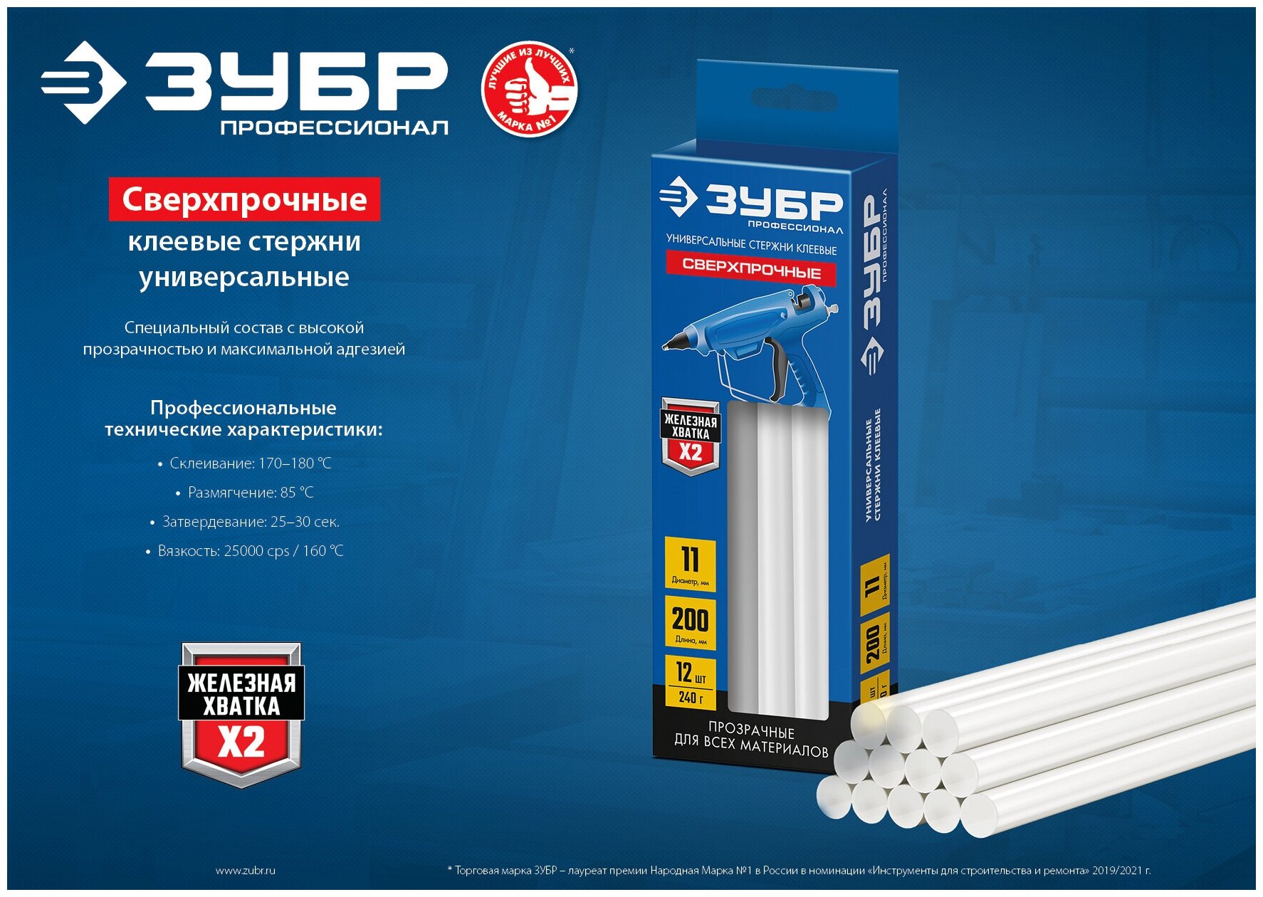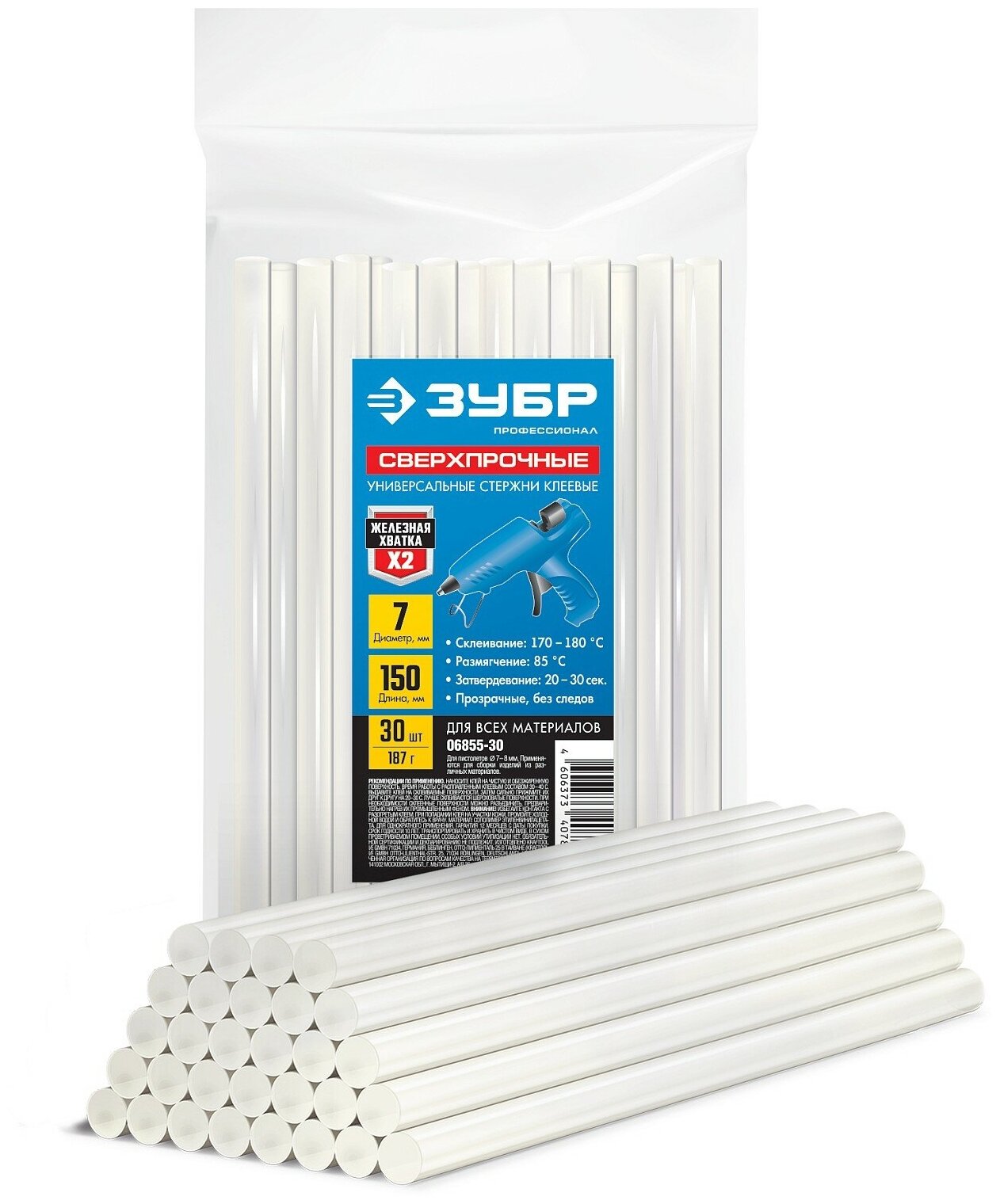 ЗУБР 7 х 150 мм 30 шт сверхпрочные прозрачные клеевые стержни Профессионал (06855-30)