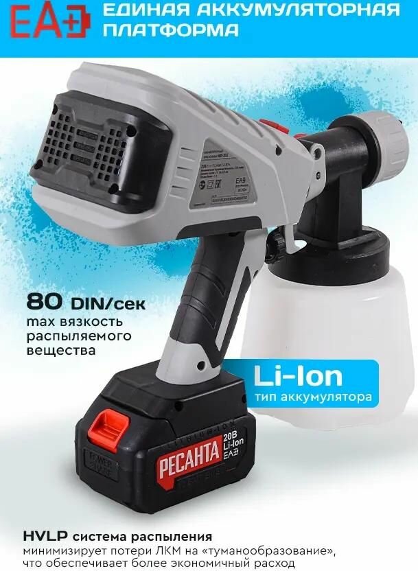 Краскопульт аккумуляторный АКП-20Li Ресанта (в комплекте 1 АКБ и ЗУ) (75/17/3)