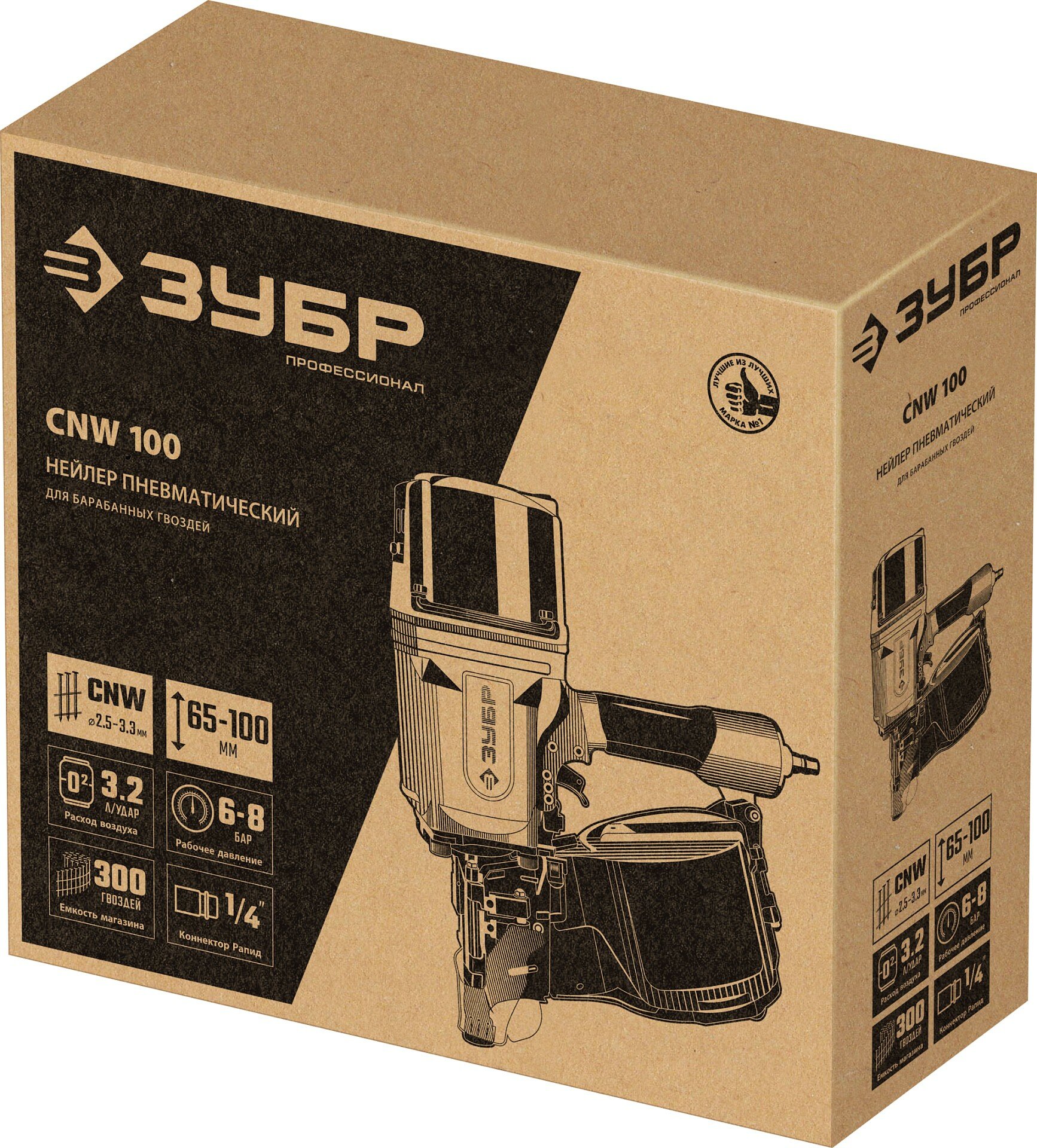 ЗУБР CNW-100 пневматический нейлер для барабанных гвоздей ЗУБР CNW (65-100 мм) Профессионал (31915)