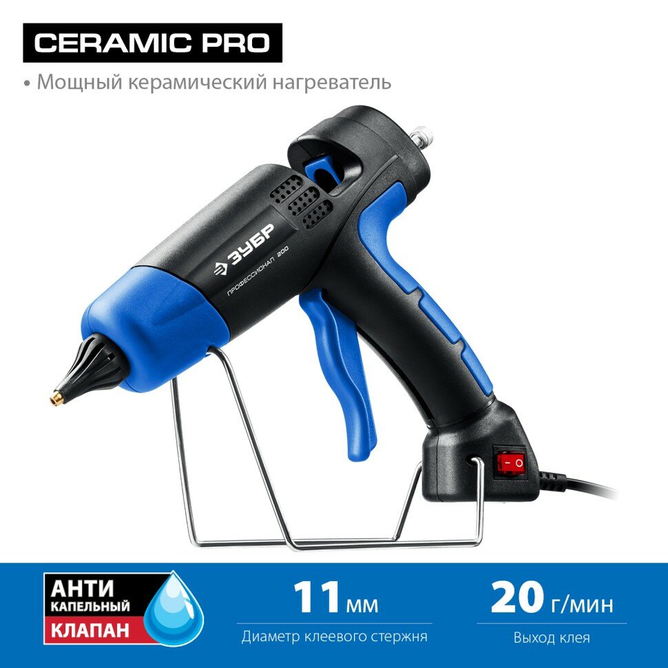 Термоклеевой электрический пистолет ЗУБР Профессионал 200, d 11 мм 06852-11 предназначен для склеивания различных материалов.