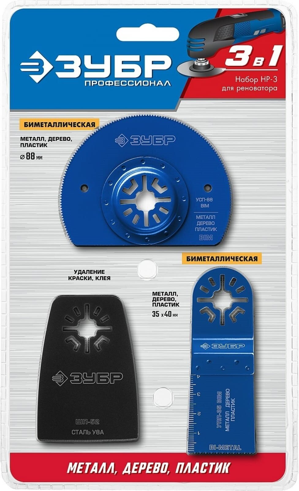 ЗУБР НР-3 UniLock OIS-хвост. 3 предм. набор насадок для реноватора Профессионал (15571)