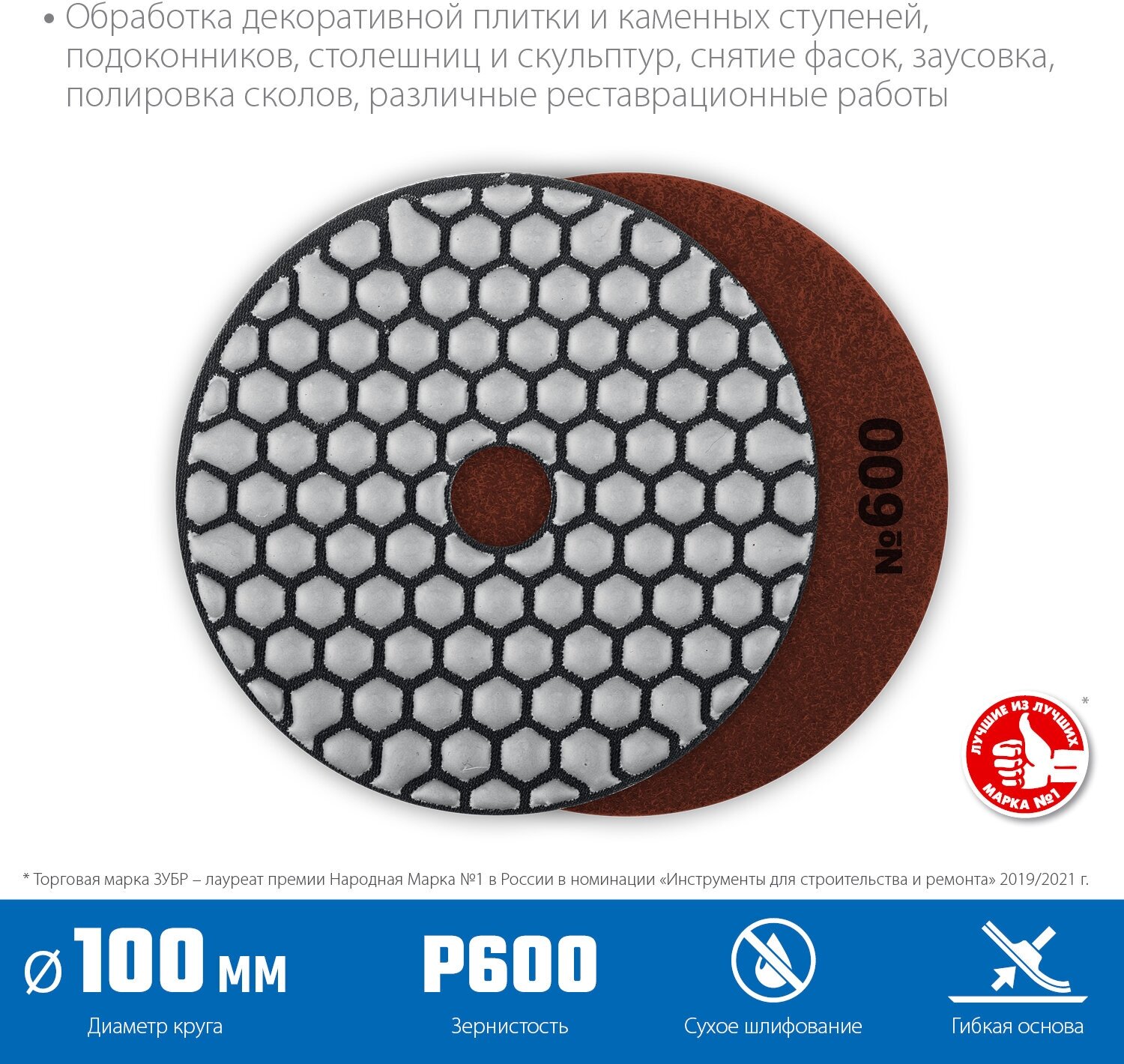 ЗУБР 100 мм №600 сухое шлифование алмазный гибкий шлифовальный круг АГШК Профессионал (29868-600)