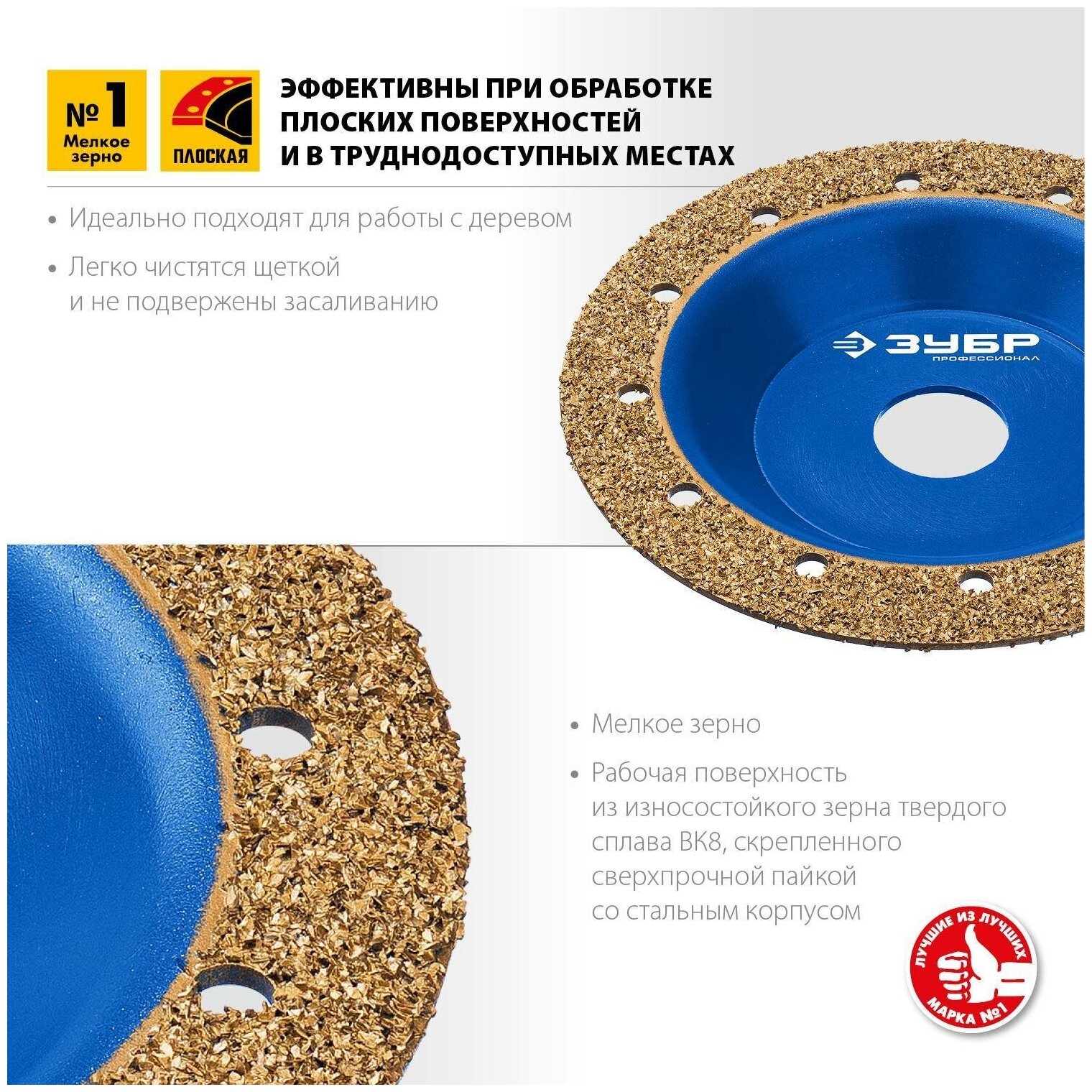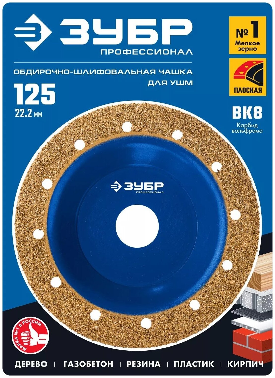 ЗУБР №1 мелкое зерно 125 мм ВК8 плоская обдирочно-шлифовальная чашка Профессионал (33430-1)