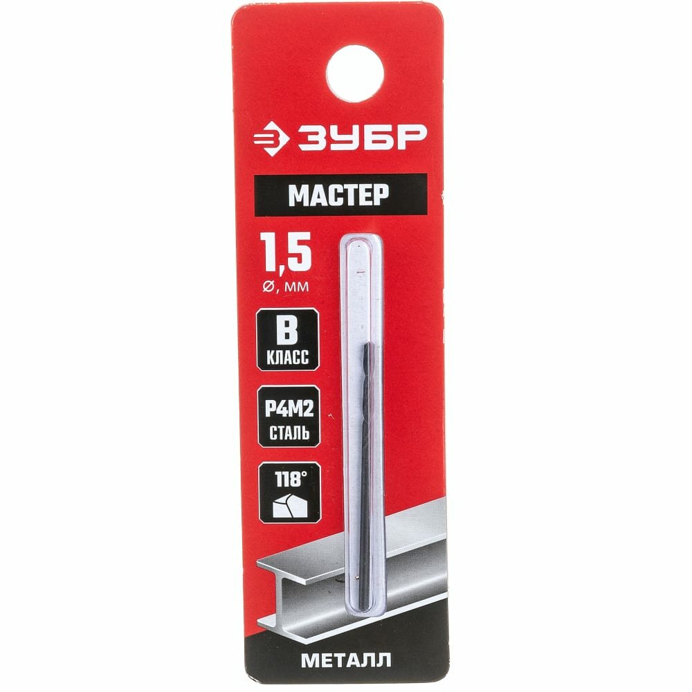 ЗУБР 1.5 х 40 мм сталь Р4М2 класс В сверло по металлу (29605-1.5)