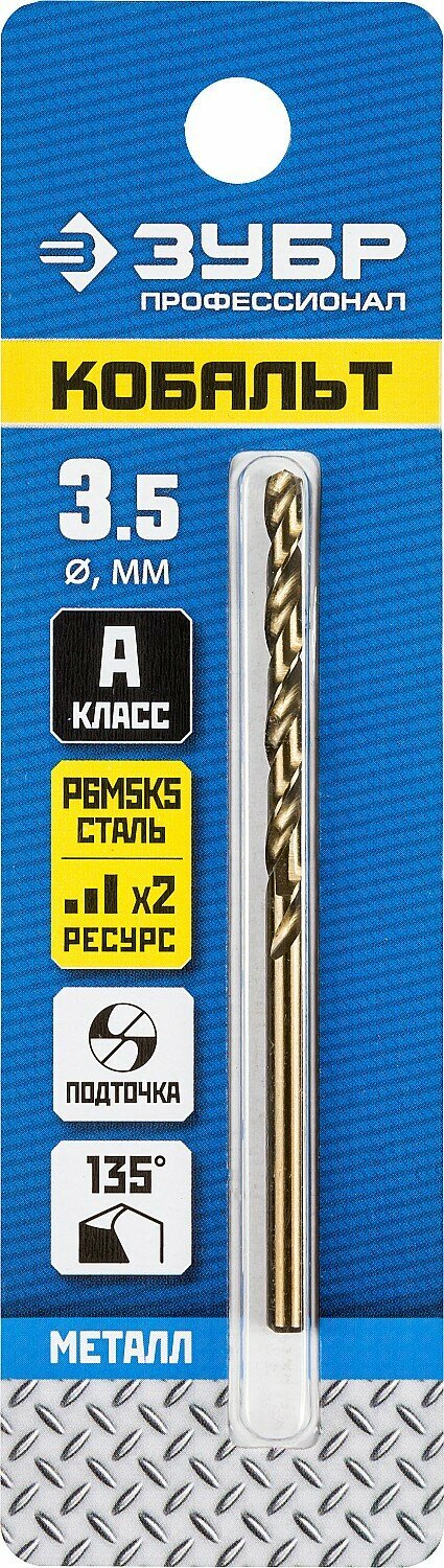 ЗУБР ПРОФ-А 8.0 х 117 мм сталь Р6М5 класс А сверло по металлу Профессионал (29625-8)