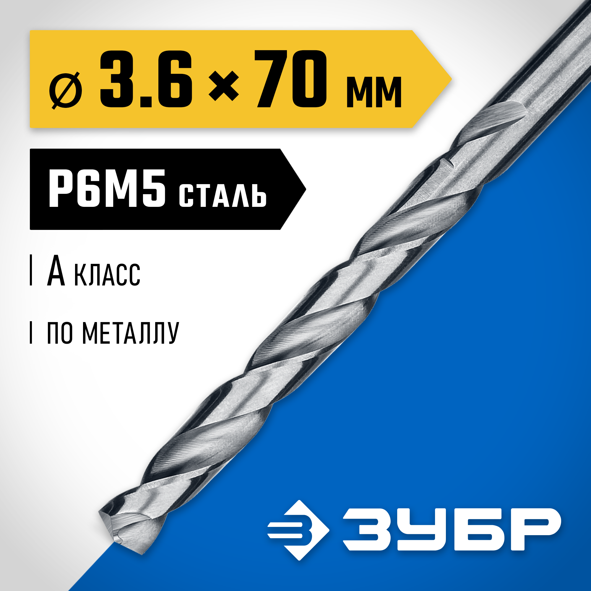 ЗУБР ПРОФ-А 3.6 х 70 мм сталь Р6М5 класс А сверло по металлу Профессионал (29625-3.6)