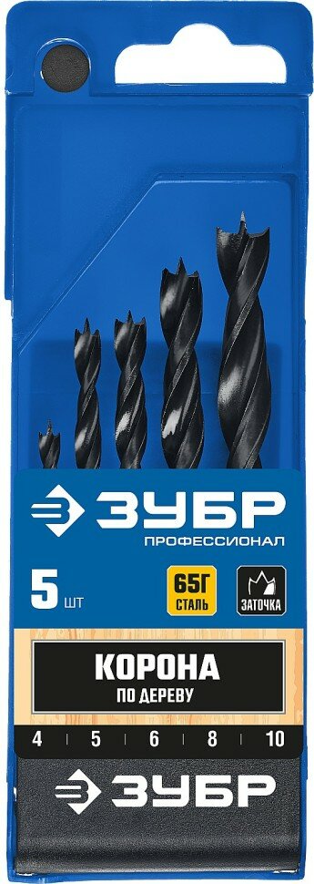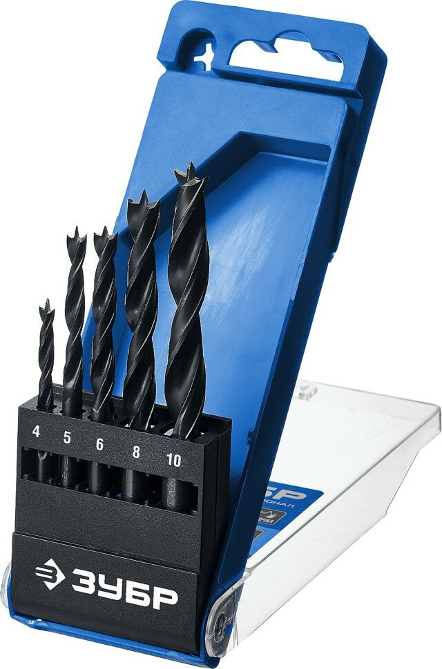 ЗУБР 5 шт: (4-5-6-8-10 мм) М-образная заточка набор сверл спиральных по дереву Профессионал (29421-H5) (29421-H5_z01)