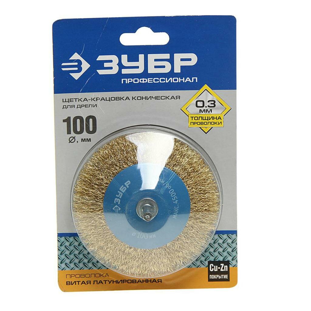 ЗУБР 100 мм витая латунированная стальная 0.3 мм коническая щетка для дрели Профессионал (35233-100) (35233-100_z02)