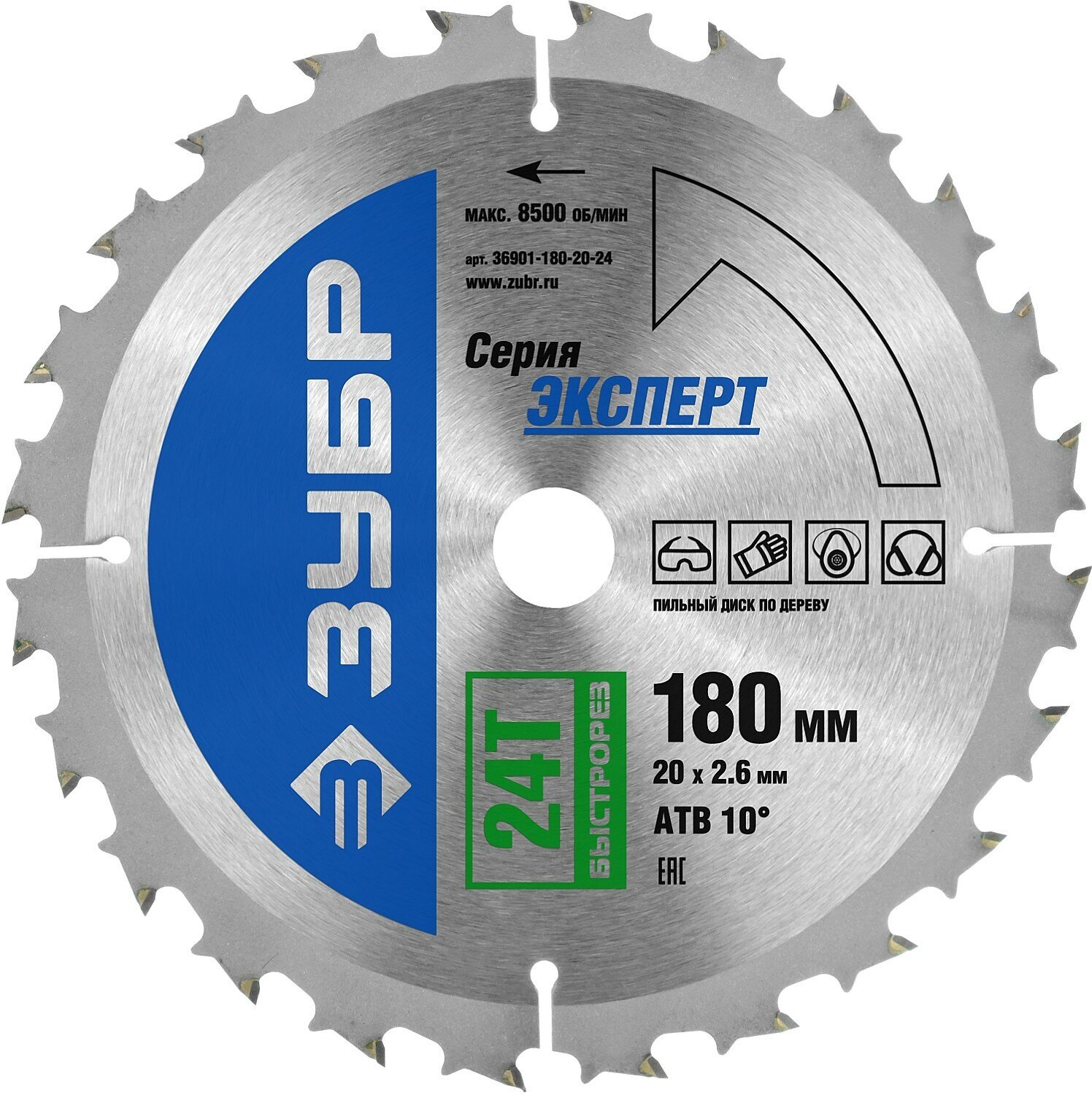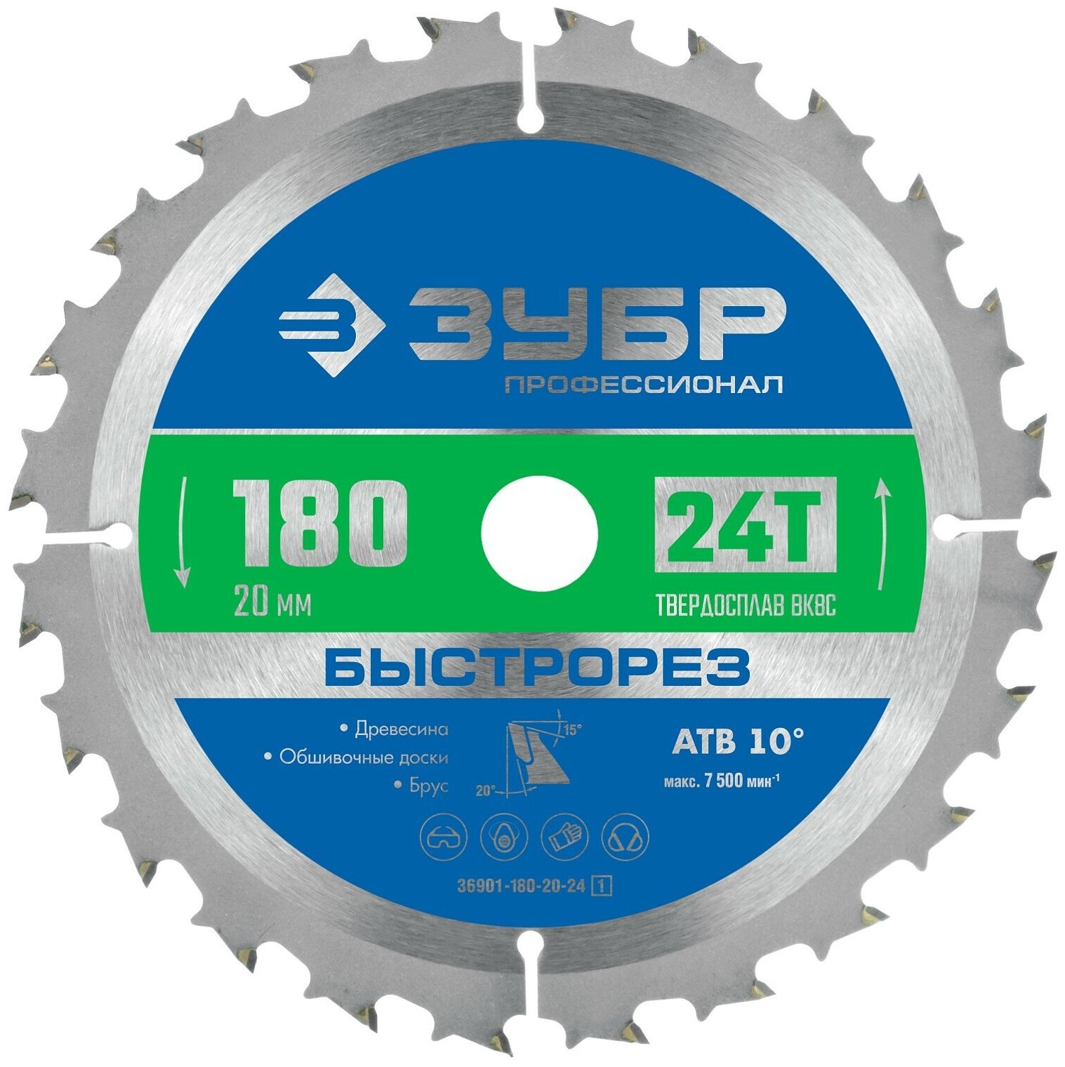 ЗУБР Быстрорез 180 x 20 мм 24Т пильный диск по дереву Профессионал (36901-180-20-24) (36901-180-20-24_z01)