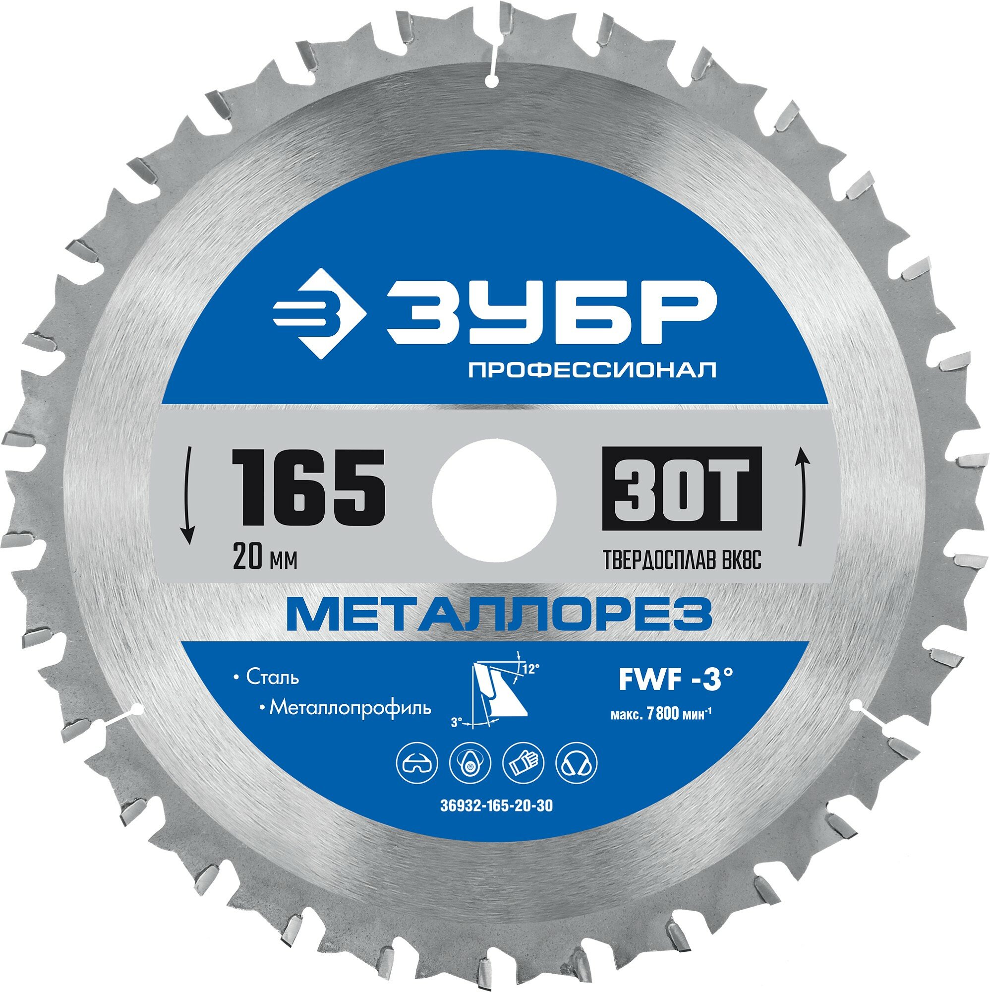 ЗУБР Металлорез 165 х 20 мм 30Т пильный диск по металлу и металлопрофилю Профессионал (36932-165-20-30)