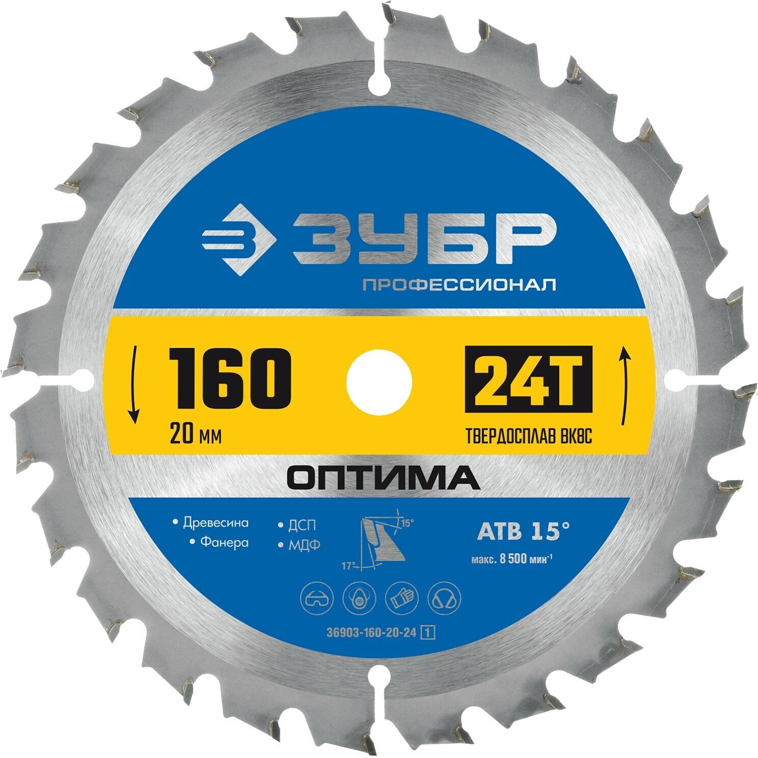 ЗУБР Оптима 160 x 20 мм 24Т пильный диск по дереву Профессионал (36903-160-20-24) (36903-160-20-24_z01)