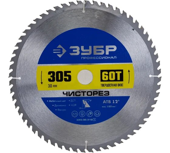 Сервис сравнения цен СкидкаГИД предлагает сравнить цены на товар «ЗУБР Чисторез 305 x 30 мм 60Т пильный диск по дереву Профессионал (36905-305-30-60) (36905-305-30-60_z01)»