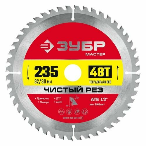 ЗУБР Чистый рез 235 x 32/30 мм 48Т пильный диск по дереву (36914-235-32-48) (36914-235-32-48_z01)