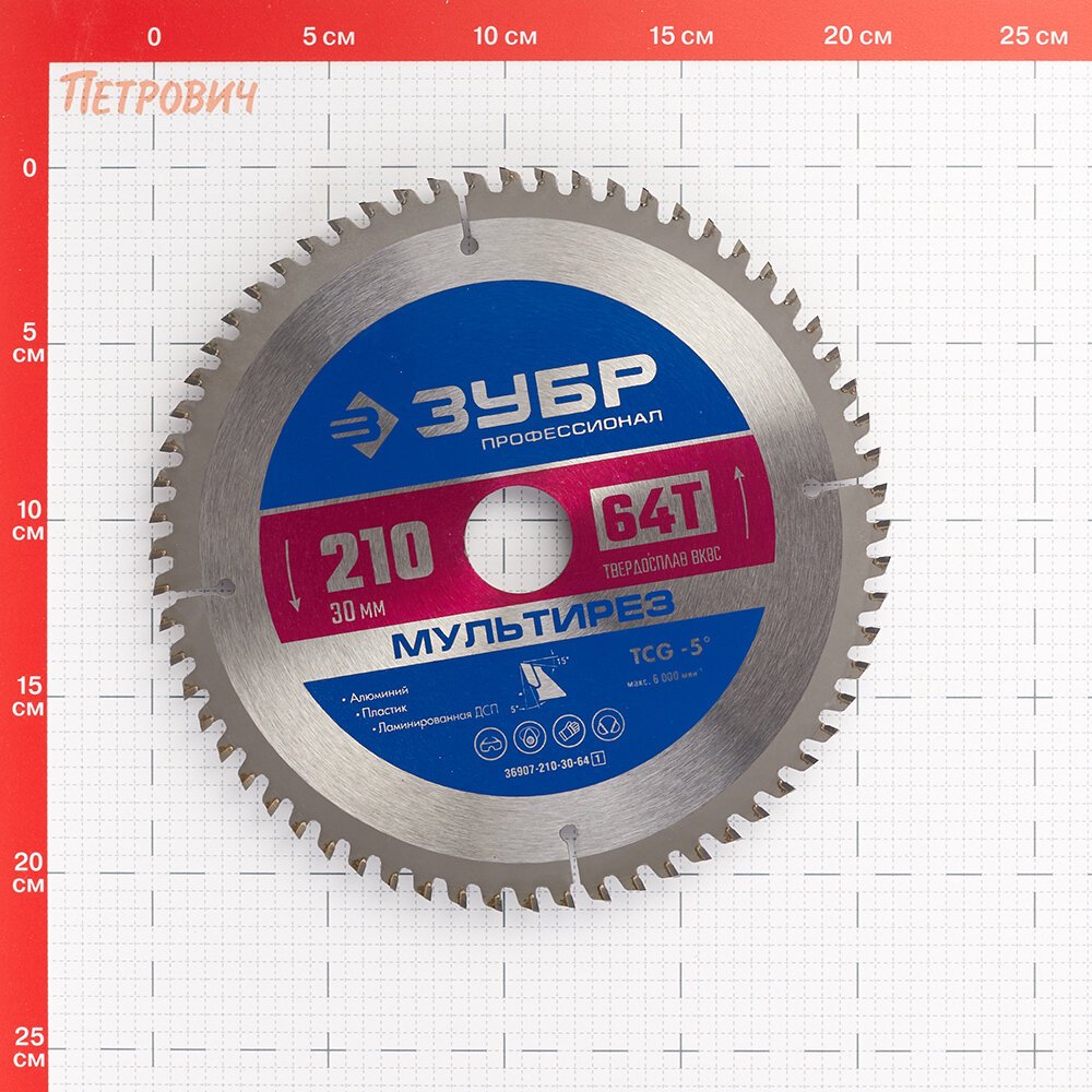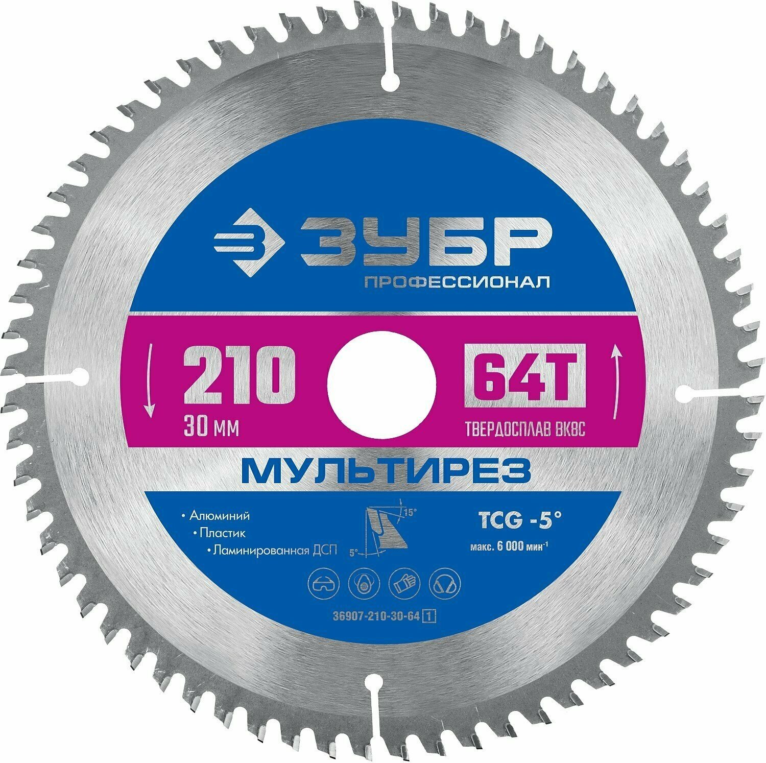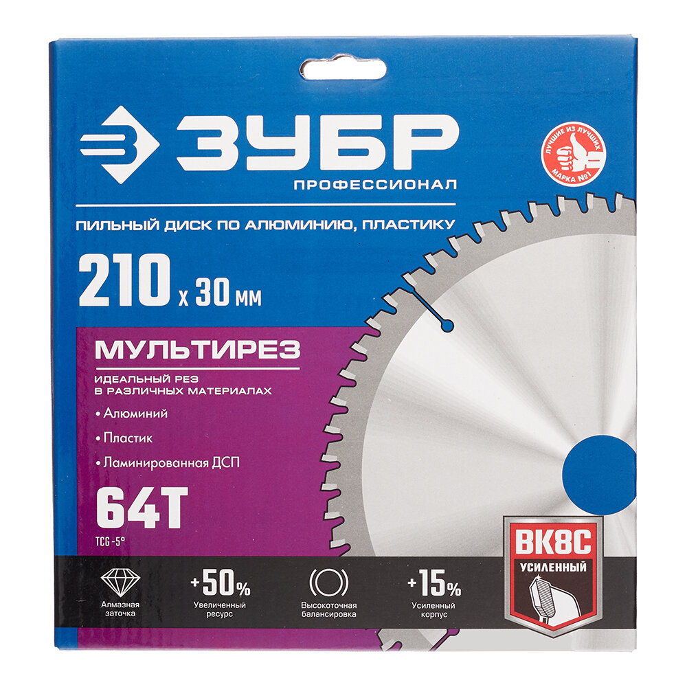 ЗУБР Мультирез 210 x 30 мм 64Т пильный диск по алюминию Профессионал (36907-210-30-64) (36907-210-30-64_z01)