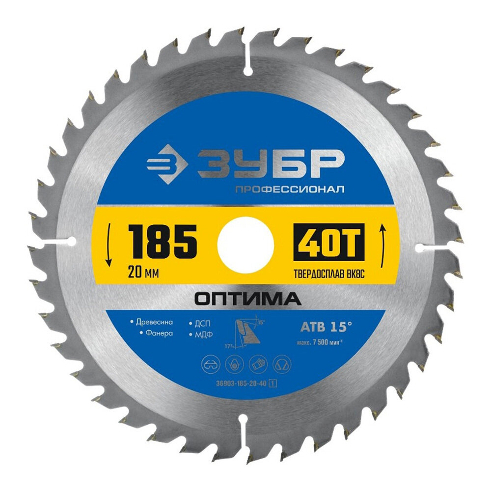ЗУБР Оптима 185 x 20 мм 40Т пильный диск по дереву Профессионал (36903-185-20-40) (36903-185-20-40_z01)