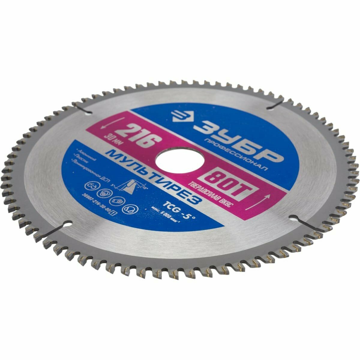ЗУБР Мультирез 216 x 30 мм 80Т пильный диск по алюминию Профессионал (36907-216-30-80) (36907-216-30-80_z01)