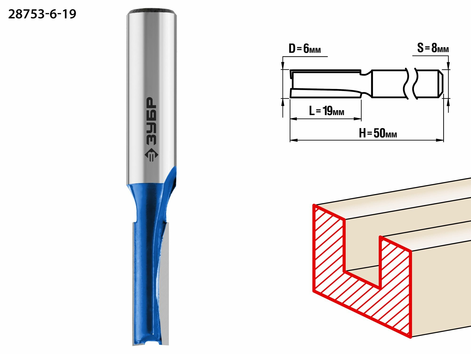 ЗУБР 6 x 19 мм хвостовик 8 мм фреза пазовая прямая Профессионал (28753-6-19)
