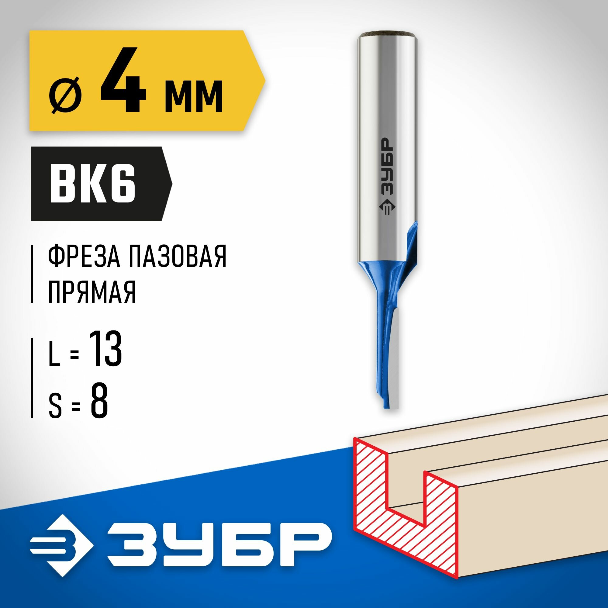 ЗУБР 4 x 13 мм хвостовик 8 мм фреза пазовая прямая Профессионал (28753-4-13)