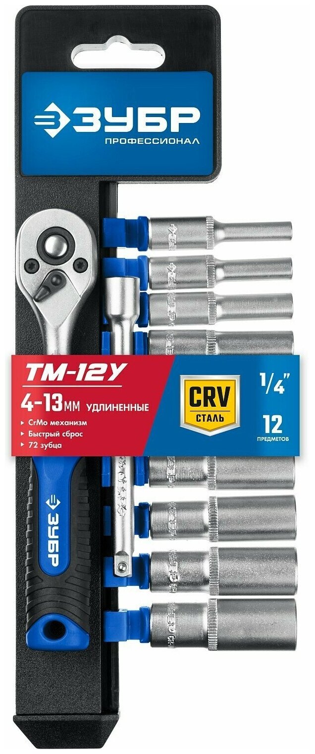 ЗУБР ТБ-12У 12 предм. (1/2″) набор торцовых головок Профессионал (27650-H12)