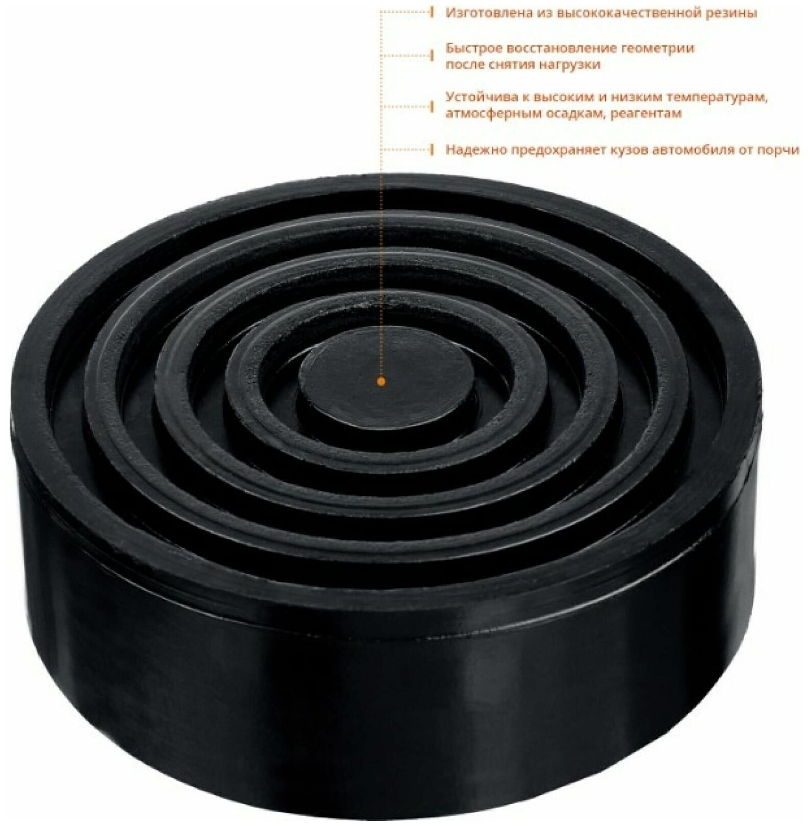 Надежно предохраняет возможную порчу ТС при использовании подъемного устройства. Диаметр 105 мм, толщина 35 мм.