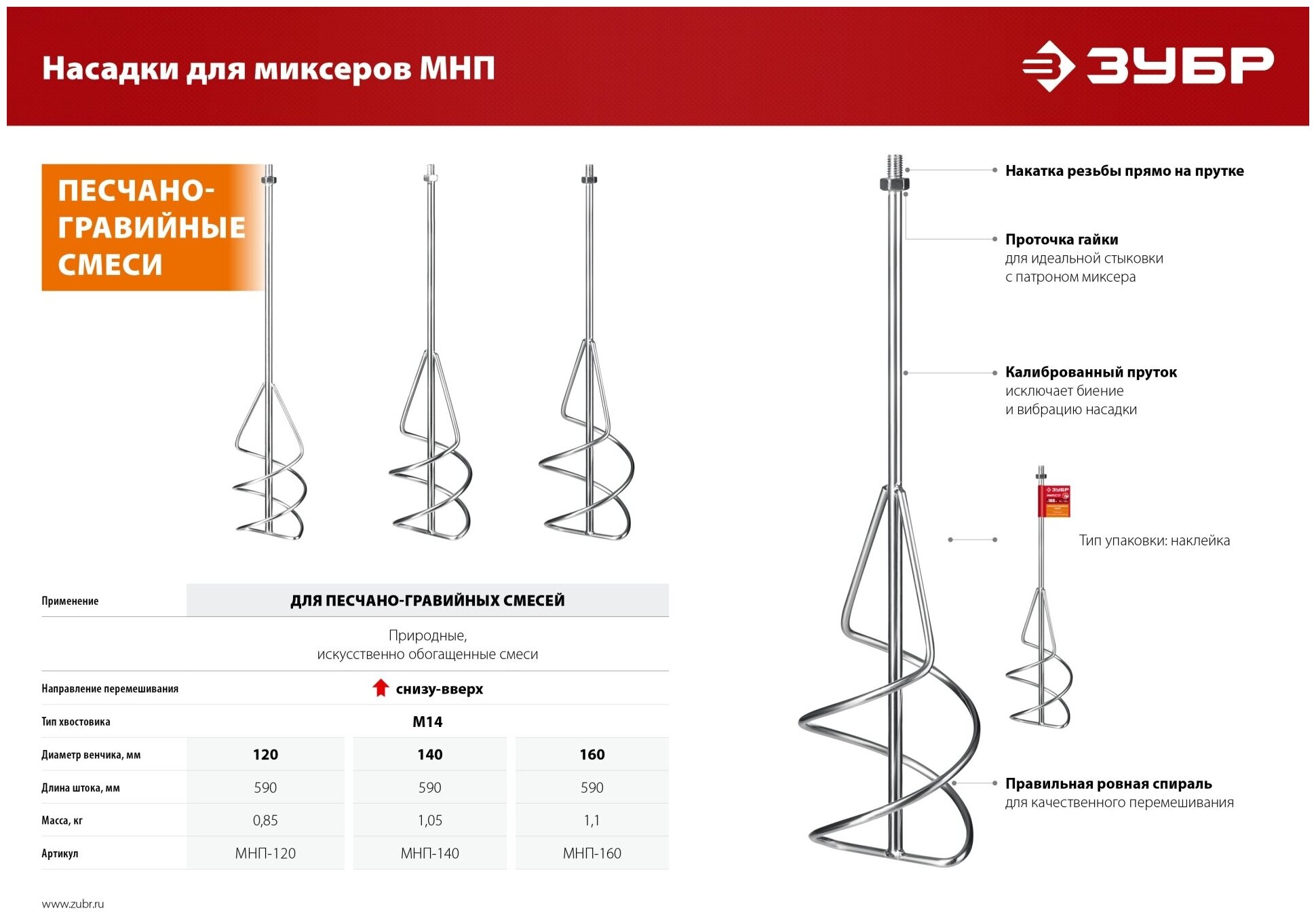 ЗУБР М14 d120 мм насадка-миксер для песчано-гравийных смесей ″снизу-вверх″ (МНП-120)