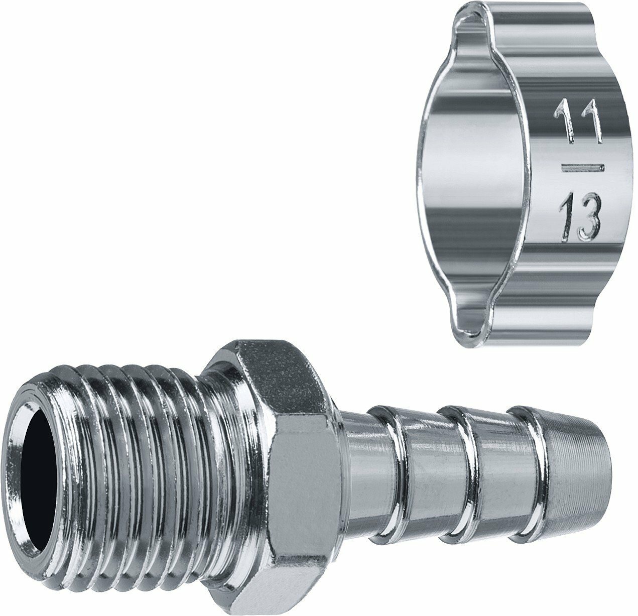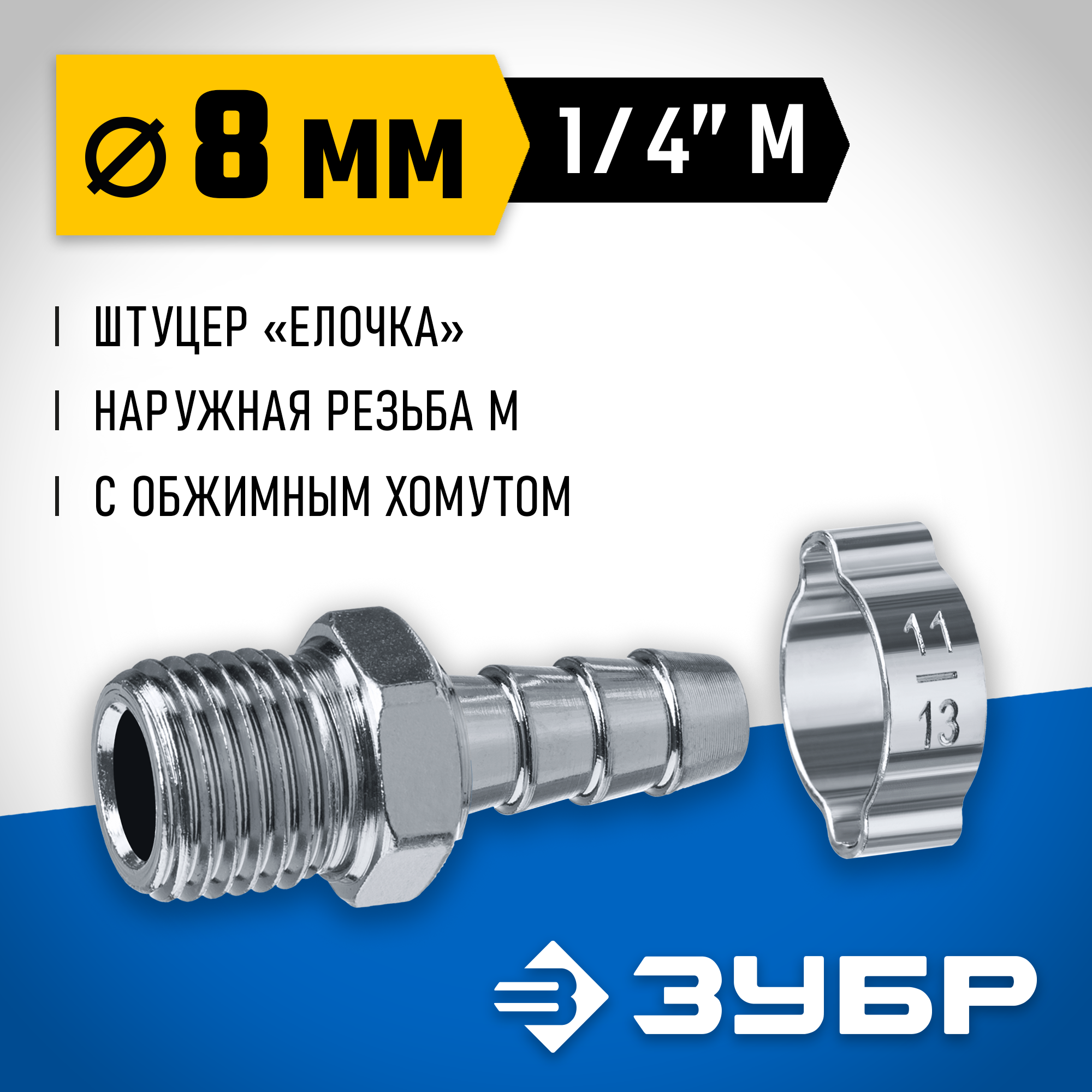 ЗУБР штуцер ″елочка″ 8 мм - 1/4″M переходник с обжимным хомутом Профессионал (64924-1/4-08)