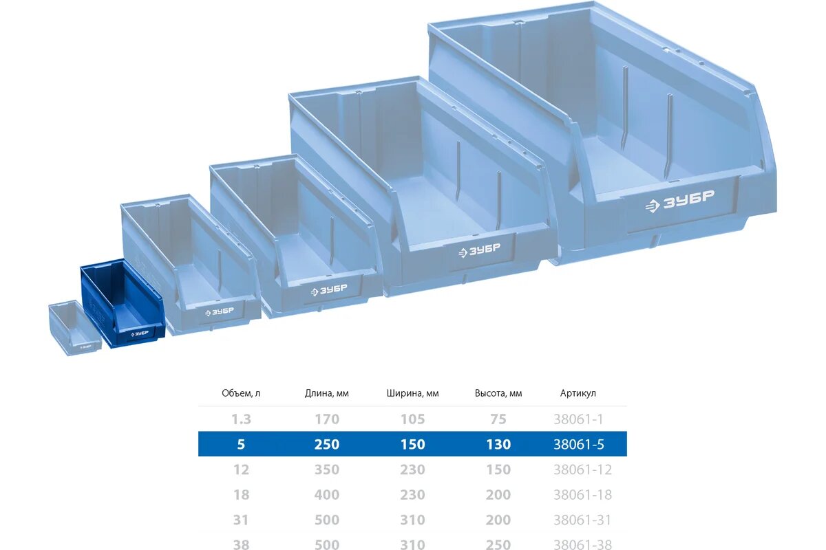 ЗУБР ЛСК-5 5 л 250 х 150 х 130 мм складской лоток Профессионал (38061-5)