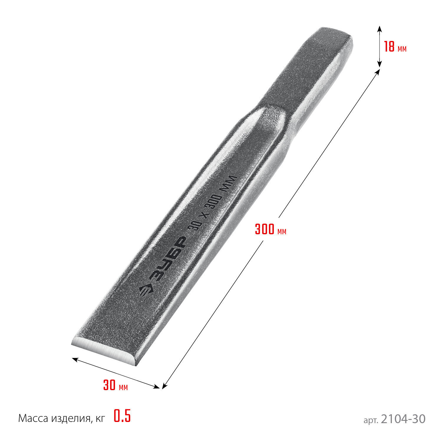 ЗУБР Двутавр 30 х 300 мм усиленное двутавровое слесарное зубило по металлу Профессионал (2104-30)