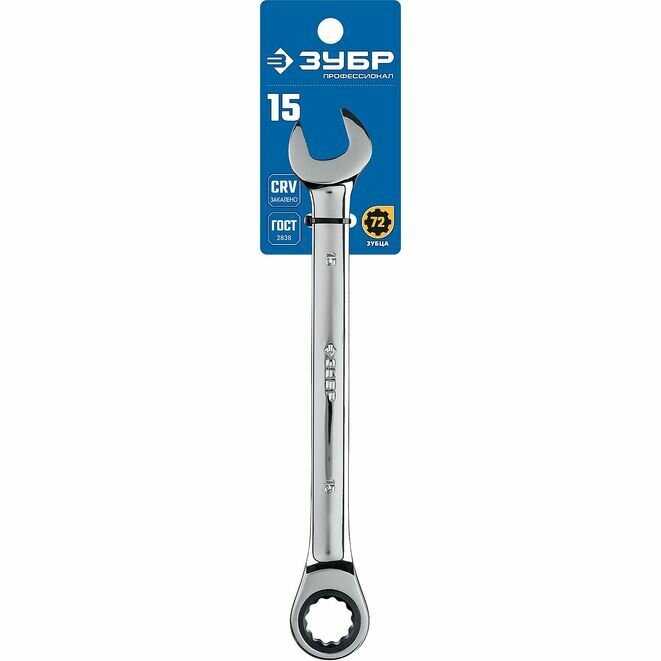 ЗУБР 15 мм комбинированный трещоточный гаечный ключ Профессионал (27074-15) (27074-15_z01)