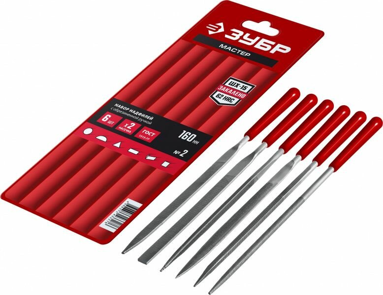 ЗУБР 6 шт 160 мм в чехле с ручками набор надфилей (16016-H6)