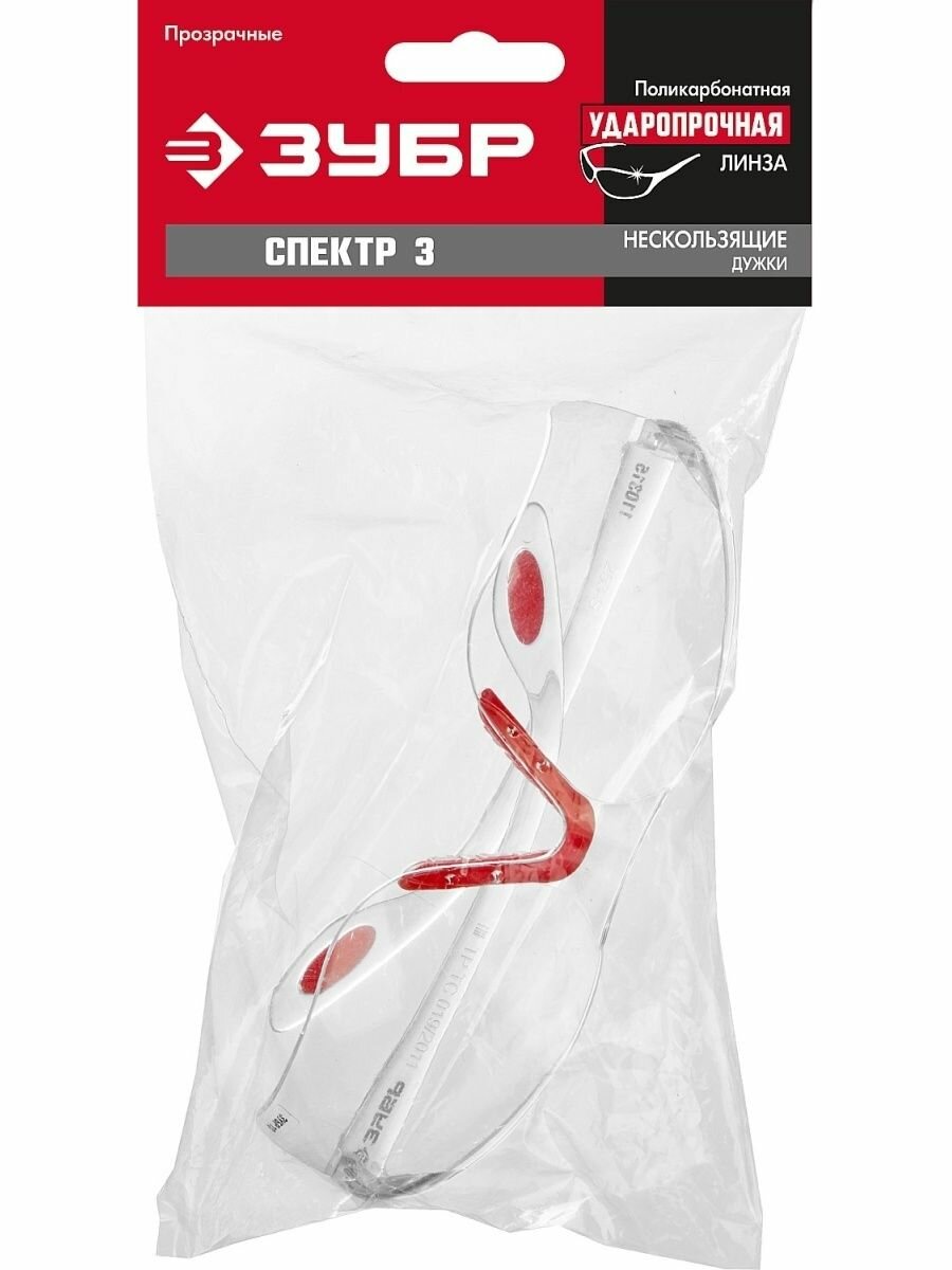 Прозрачные защитные очки Зубр Спектр 3 открытого типа, двухкомпонентные дужки 110315 обеспечивают защиту глаз от низкоэнергетического удара. Подходят для работы с токарным и слесарным инструментом. Они изготовлены из прочного поликарбоната, что гарантирует долгий срок службы. Выдвижные регулируемые дужки имеют возможность подстраиваться под необходимый размер, создавая удобство использования.