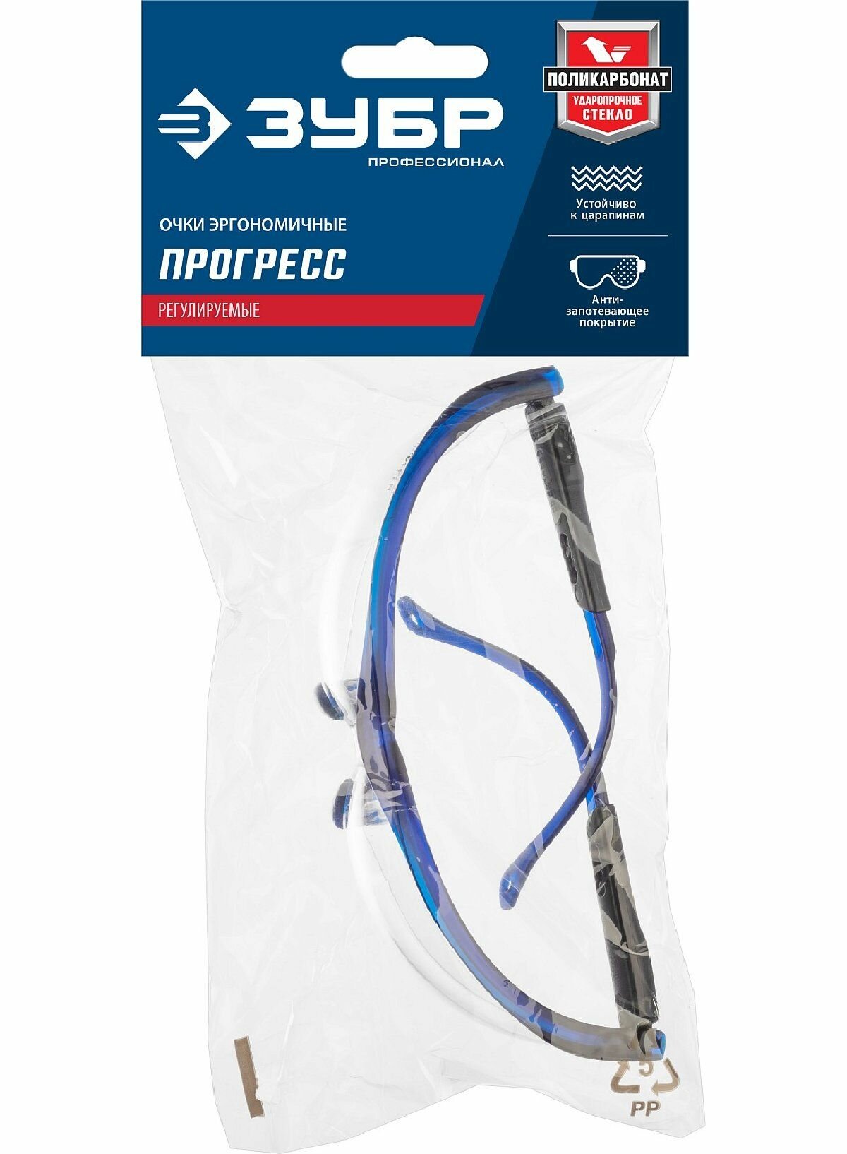 ЗУБР ПРОГРЕСС открытого типа прозрачные стекло устойчивое к царапинам и запотеванию защитные очки Профессионал (110320) (110320_z02)