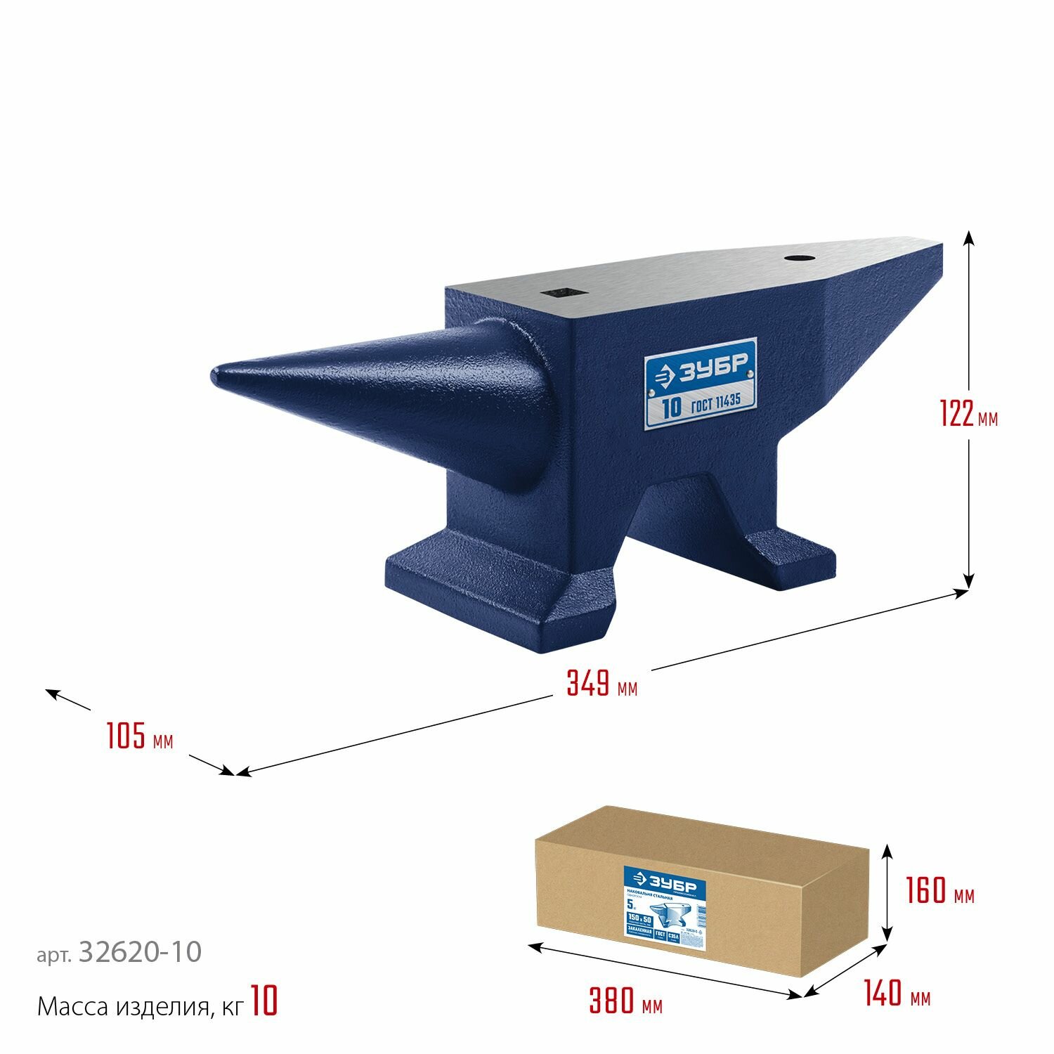 ЗУБР 10 кг стальная наковальня Профессионал (32620-10)