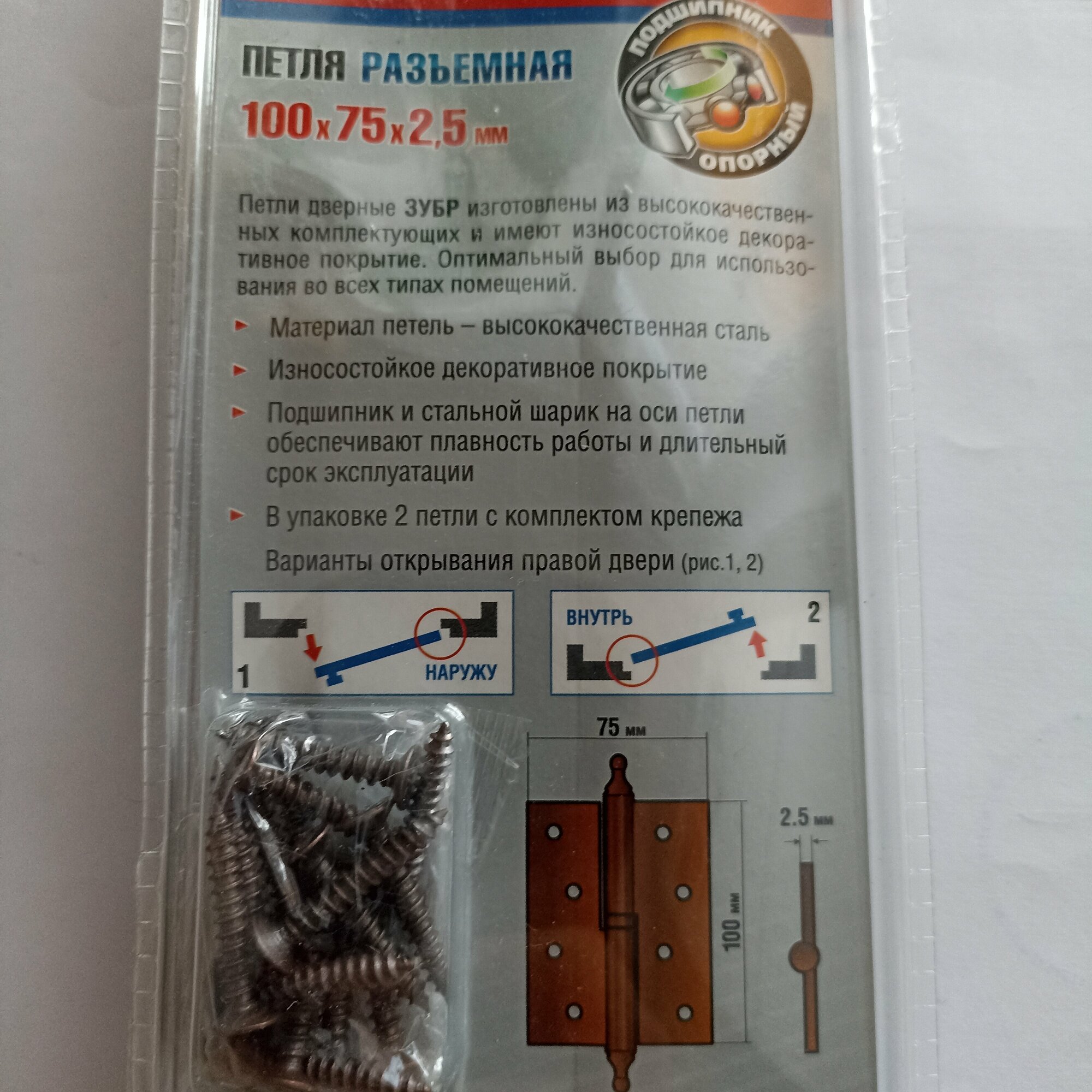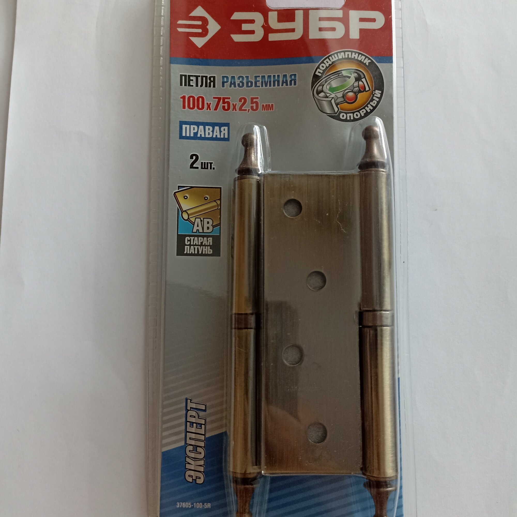 На сегодняшний день товар «ЗУБР 100 х 75 х 2.5 мм разъемная правая цвет старая латунь (AB) 2 ш карточная петля (37605-100-5R)» можно купить с кешбеком в 1 магазине: Яндекс.Маркет