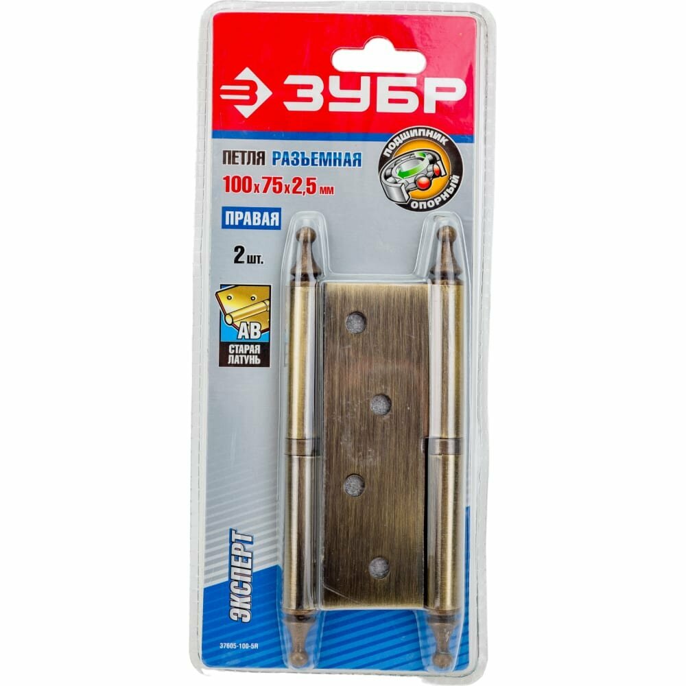 ЗУБР 100 х 75 х 2.5 мм разъемная правая цвет старая латунь (AB) 2 ш карточная петля (37605-100-5R)