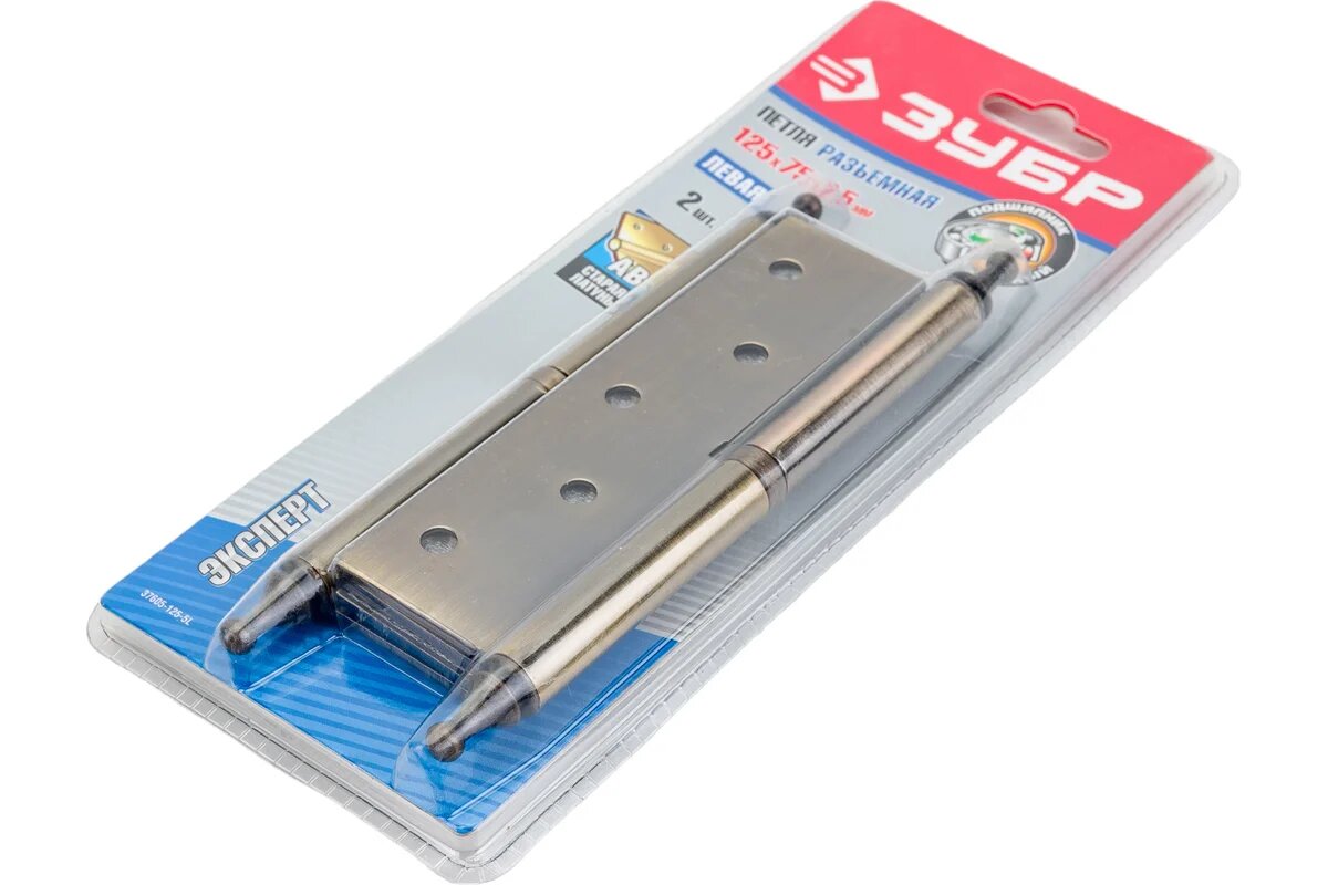 ЗУБР 125 х 75 х 2.5 мм разъемная левая цвет латунь (PB) 2 шт карточная петля (37605-125-1L)