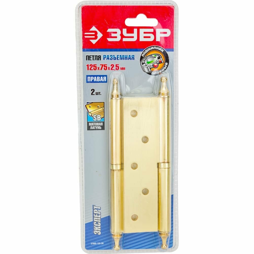 ЗУБР 125 х 75 х 2.5 мм разъемная правая цвет латунь (PB) 2 шт карточная петля (37605-125-1R)