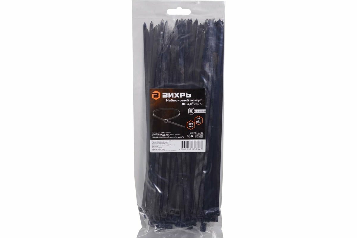Сервис сравнения цен СкидкаГИД предлагает сравнить цены на товар «Нейлоновый хомут ХН 48х250 Ч Вихрь (73/9/1/31) (размер: 4,8х250мм)»