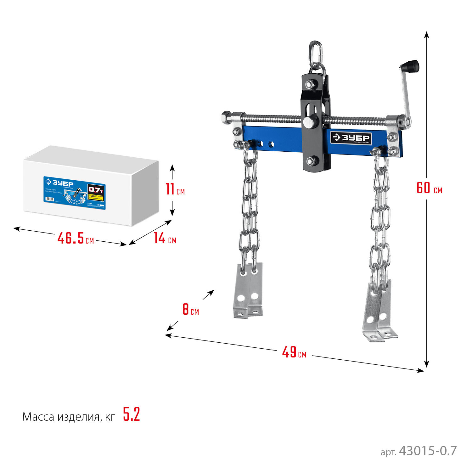 ЗУБР 0.7 т траверса для гидравлического крана Профессионал (43015-0.7)