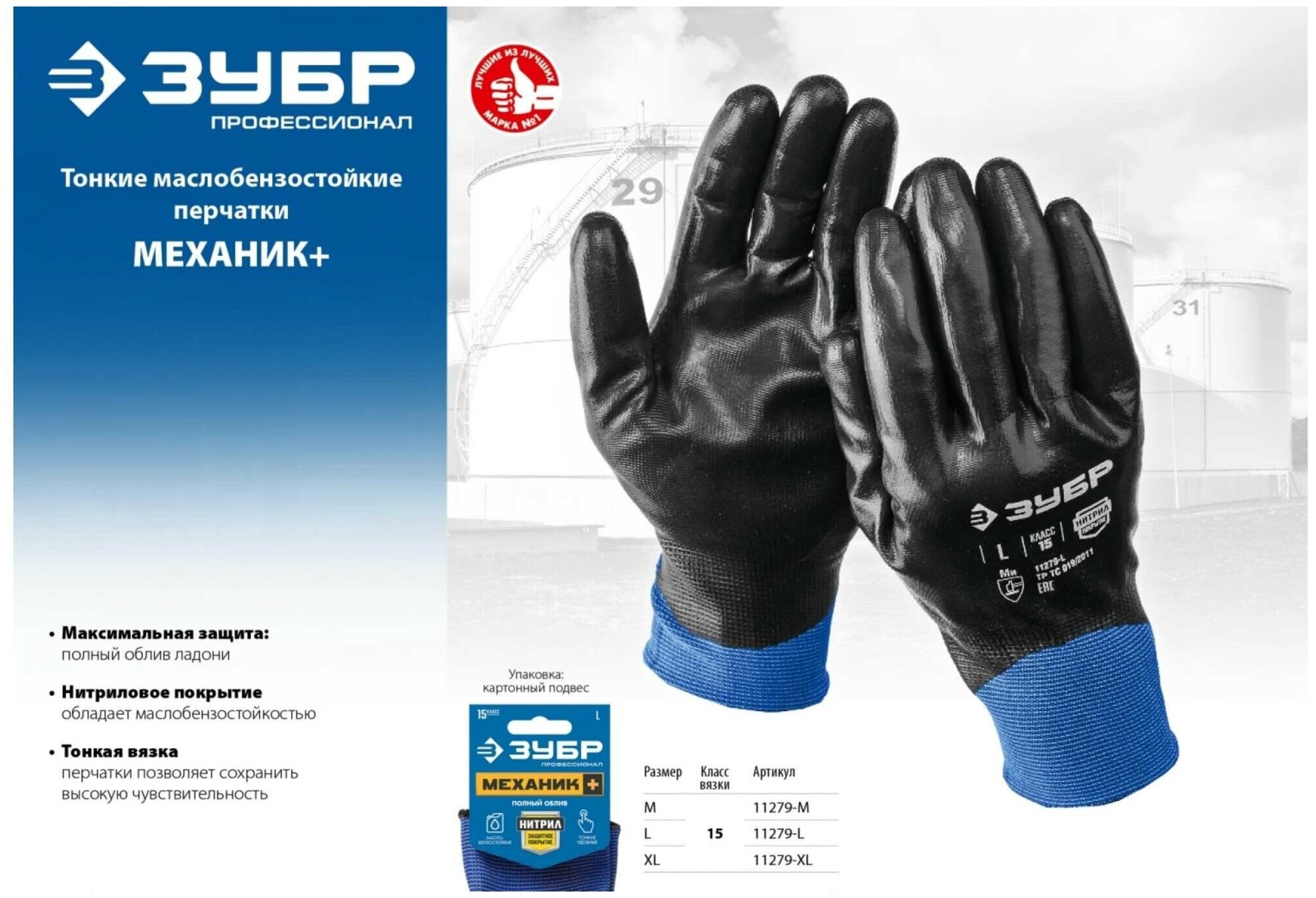 Сервис сравнения цен СкидкаГИД предлагает сравнить цены на товар «ЗУБР МЕХАНИК+ L (9) перчатки с полным нитриловым обливом маслобензостойкие 15 класс Профессионал (11279-L)»
