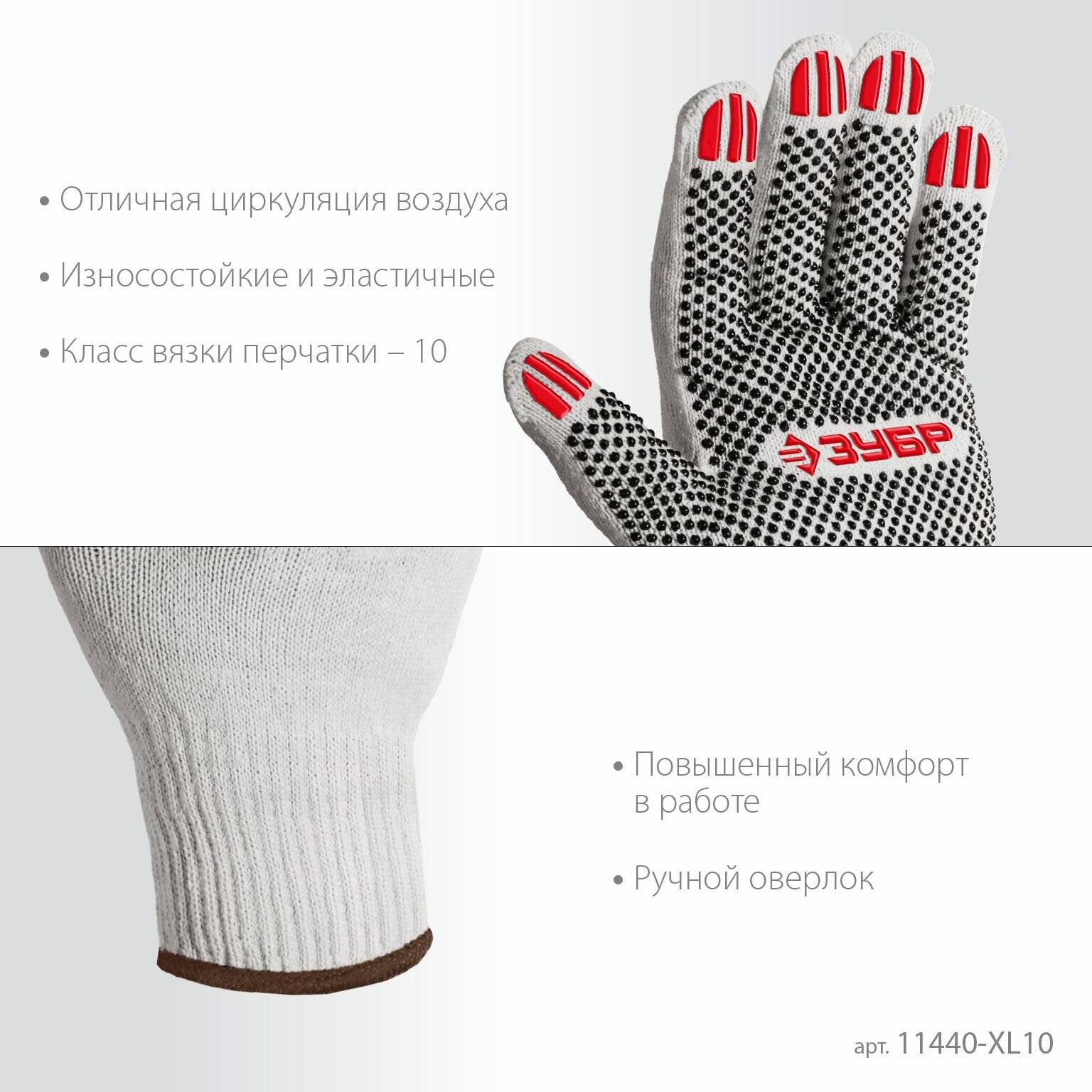 ЗУБР ОПТИМА XL (10) х/б перчатки с ПВХ покрытием (точка) 10 класс 10 пар (11440-XL10)