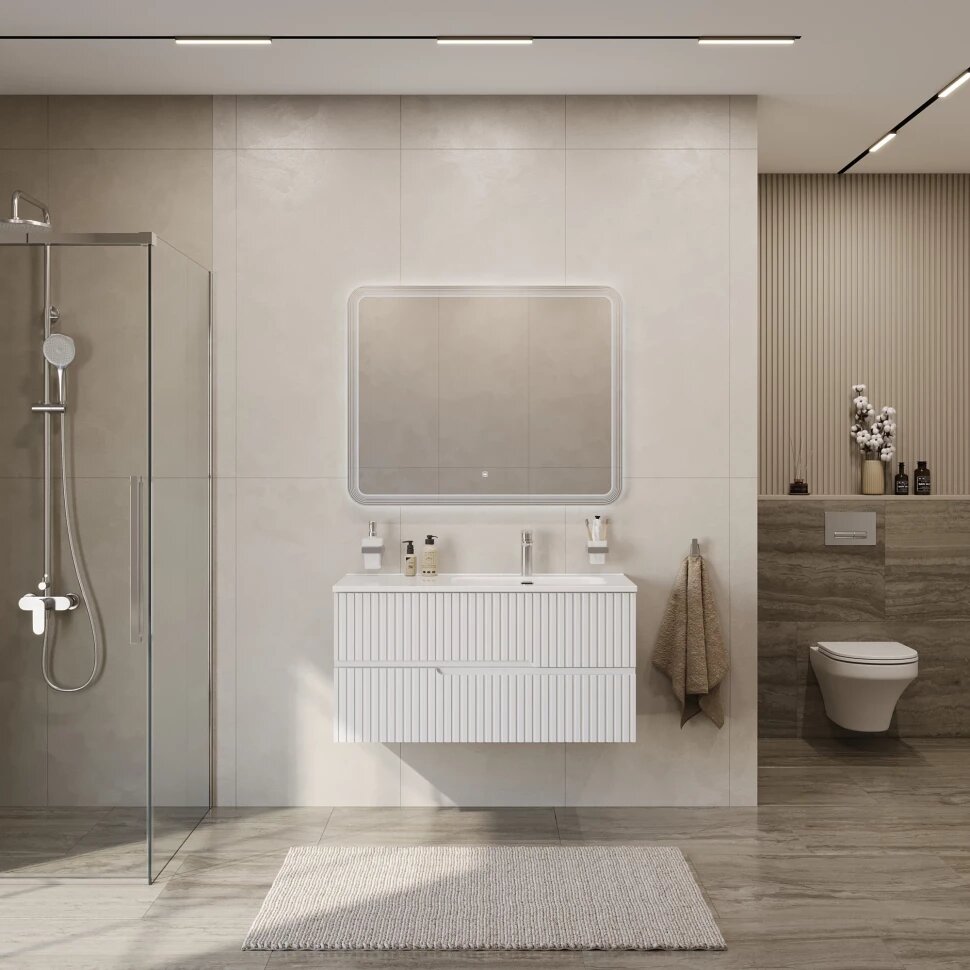 Мебель для ванной комнаты Cezares Duet 101 см правая, подвесная, bianco lucido