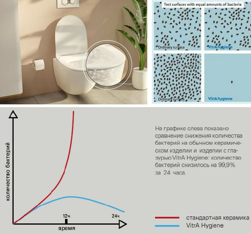 - Покрытие: антибактериальная глазурь VitrA Hygiene.