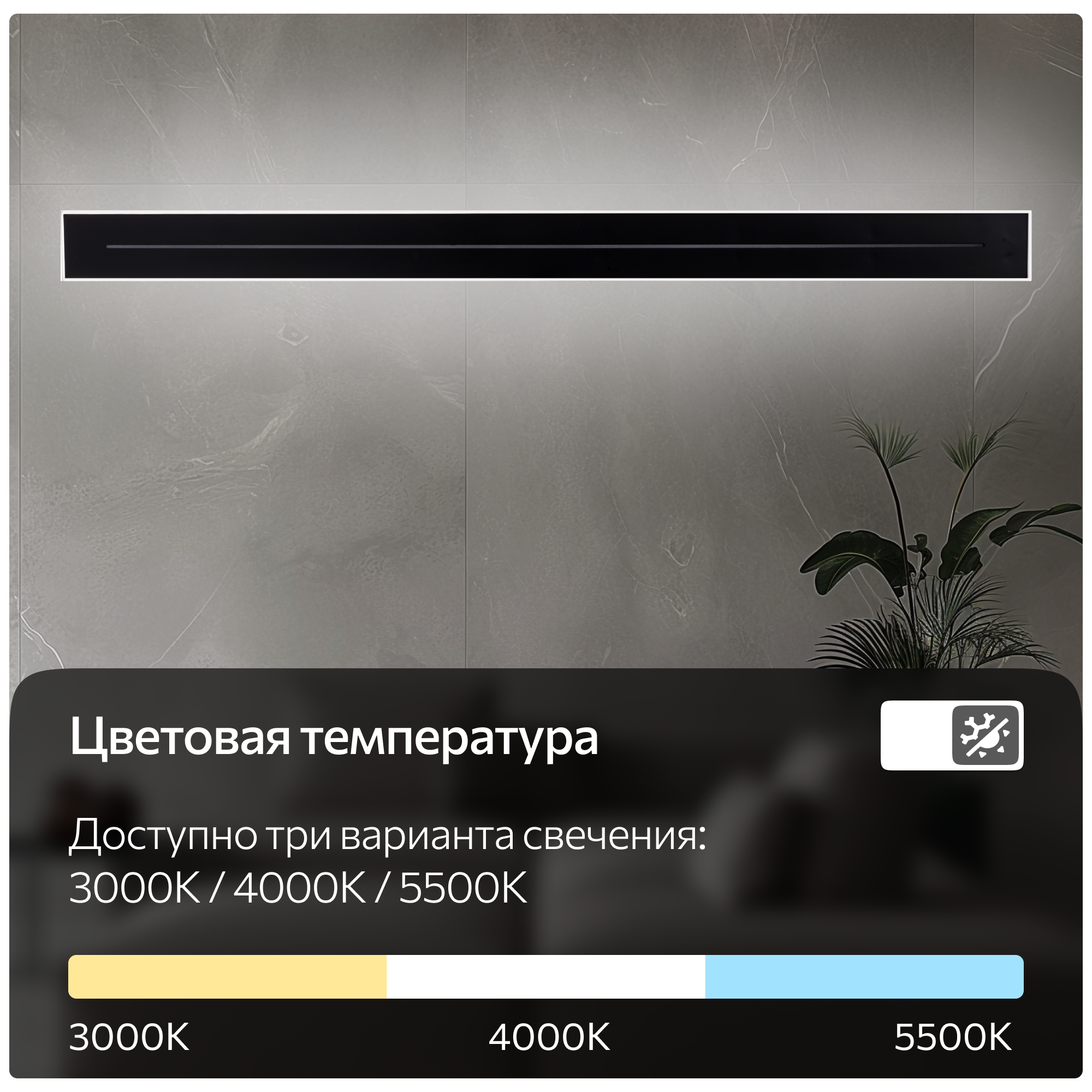 | Цветовая температура (освещение), К | 3000, 4000, 5500 |