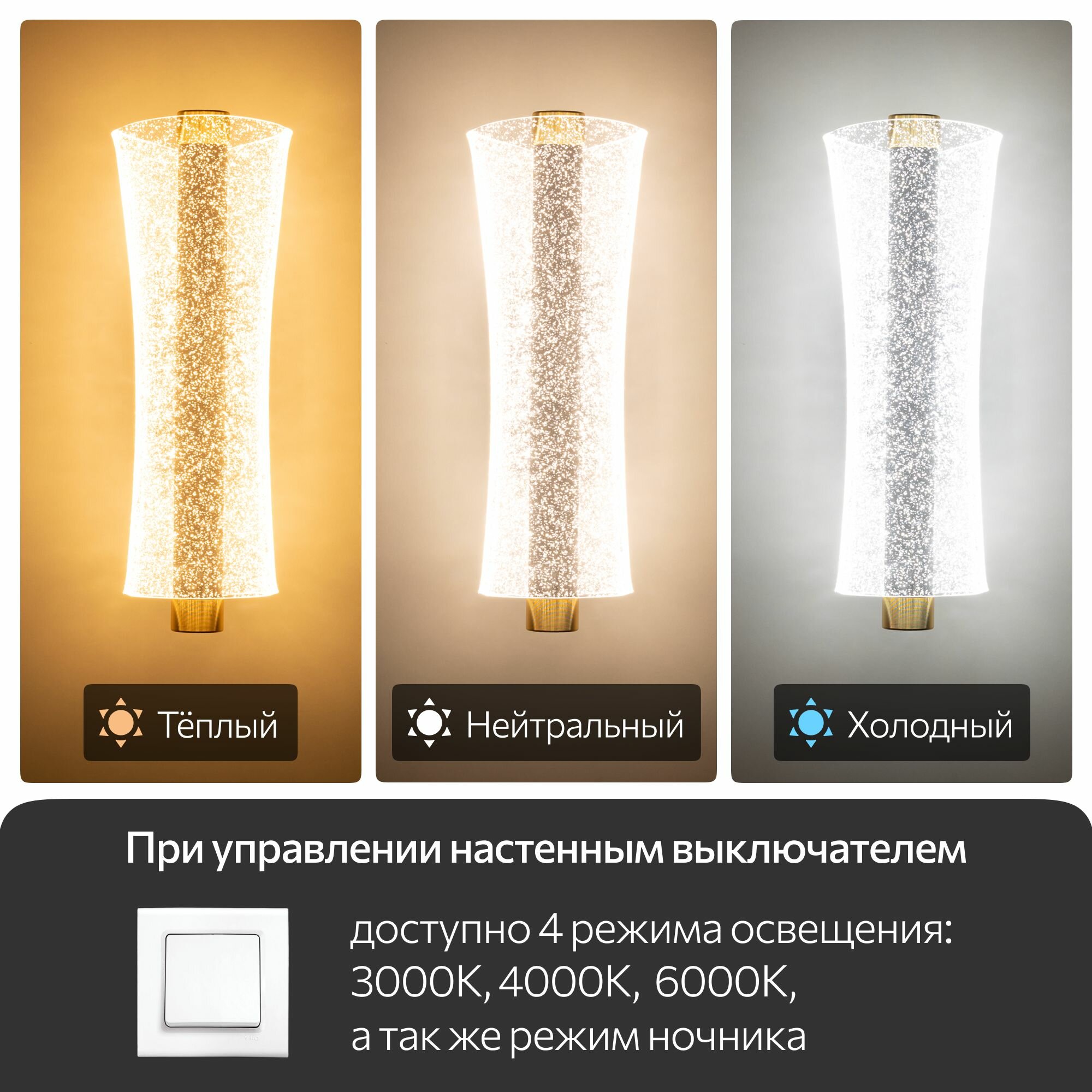 | Цветовая температура | 3000K (теплый свет) - 6000K (холодный свет) |