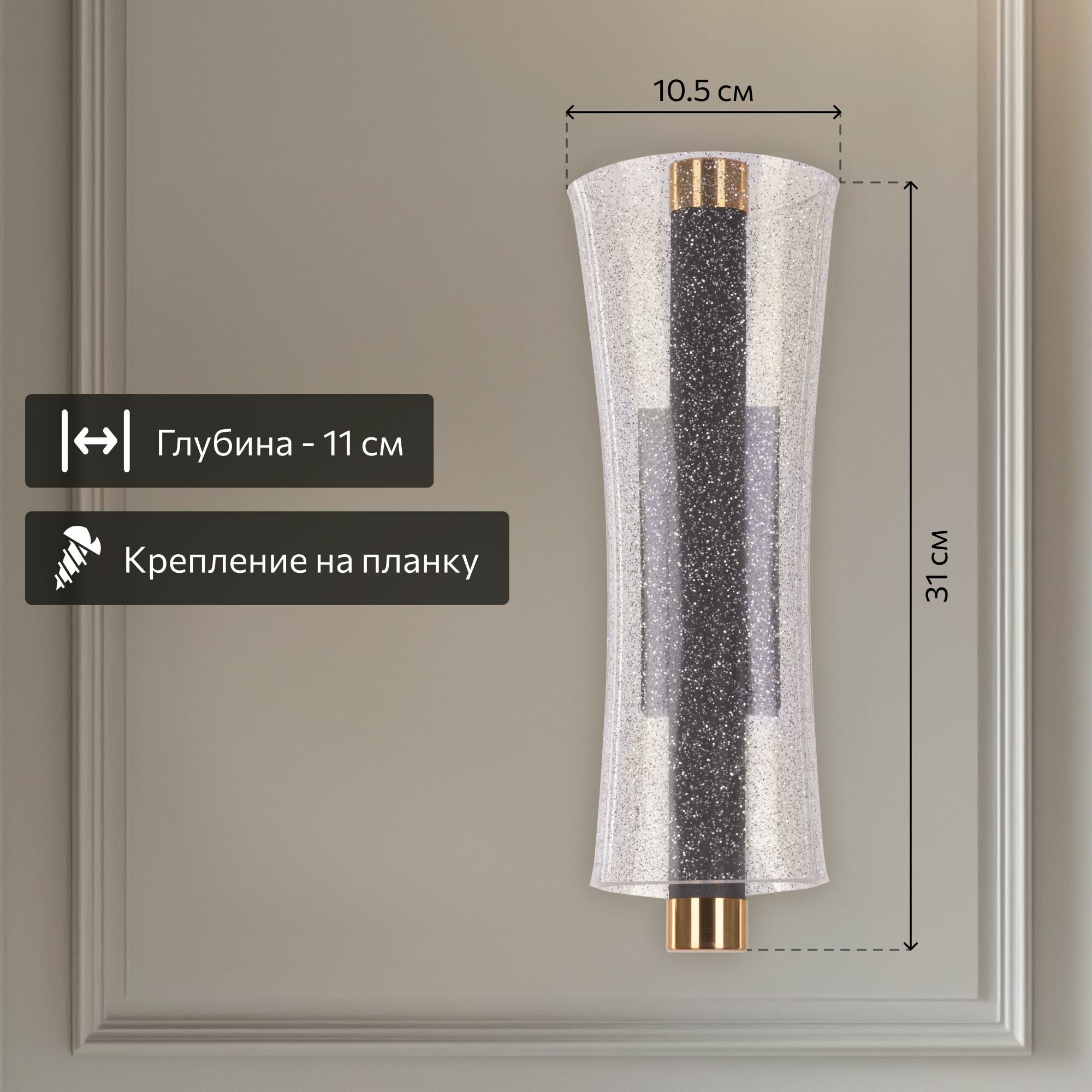 Потрясающий настенный светодиодный светильник Citilux FANNY идеальное решение для вашего интерьера! Эта модель станет ярким акцентом в любом помещении и подчеркнёт ваш вкус и индивидуальность. Корпус светильника металлический цвета графит, декоративные элементы золотого цвета. Плафон-рассеиватель выполнен из прозрачного оптического полимера с глянцевой поверхностью и вкраплениями мельчайших блесток, которые отражают свет и переливается мириадами искр, создавая эффект звёздного неба в миниатюре. Мощность изделия 13Вт. Предустановлено 4 режима освещения: (4000K (нейтральный) 6000K (холодный) 3000K (тёплый) Режим «Ночник», переключение режимов осуществляется настенным выключателем. Светильник можно повесить как вертикально, так и горизонтально. Тип крепления к стене планка. * Опционально: управляется пультом дистанционного управления от старших моделей (в комплект не входит); При наличии пульта доступны: плавная регулировка яркости света; плавная регулировка цветовой температурой в диапазоне 3000-6000К, позволяет настроить любые оттенки теплого, нейтрального или холодного света; можно настроить индивидуальное управление через выделенный канал. Шикарный настенный светильник - бра Ситилюкс FANNY будет великолепно выглядеть в любом помещении будь то гостиная, спальня, прихожая или коридор. Это отличный вариант модной подсветки зеркал.