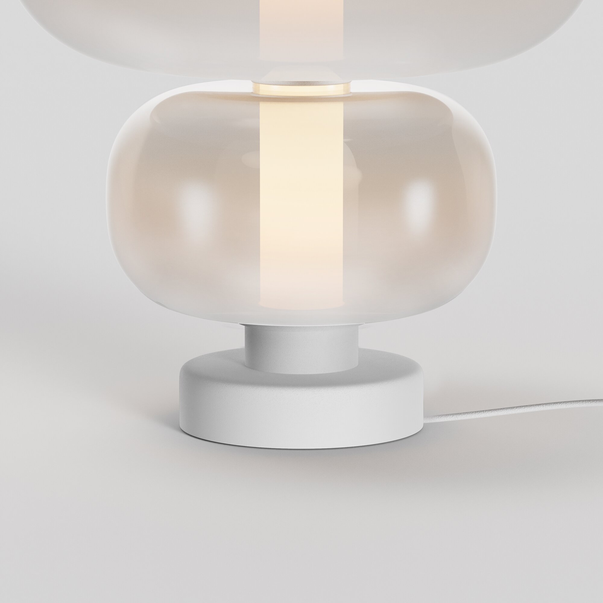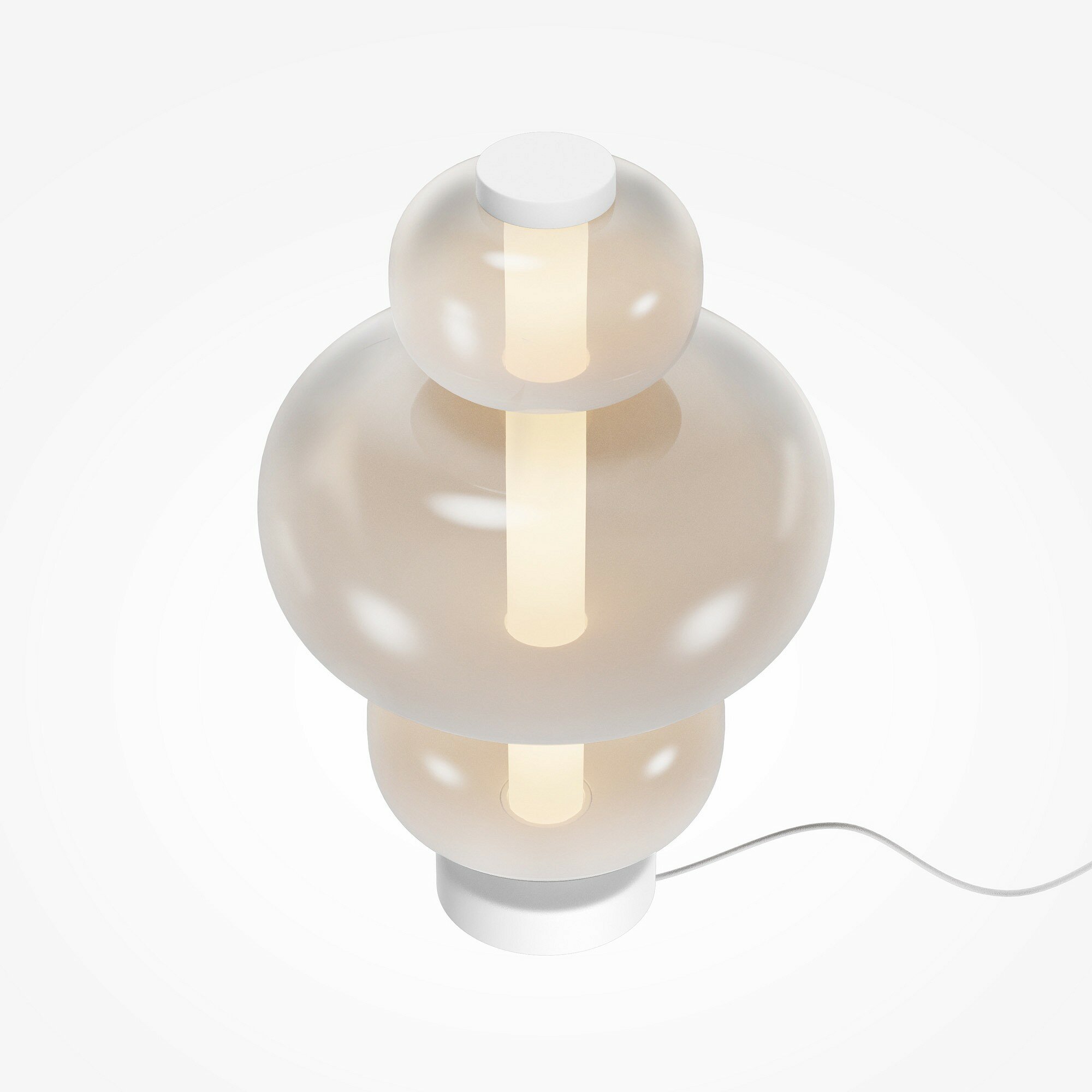 Арматура - металл, цвет - белый, черный. Плафоны окрашены в дымчатый или белый полупрозрачные цвета. В плафон установлен LED-источник света с мощным световым потоком. Цветовая температура — 3000К, угол рассеивания — 120 градусов. Внутренний рассеиватель из полупрозрачного акрила создает мягкое свечение. Предусмотрена функция диммирования: touch-переключатель обеспечивает плавное бесступенчатое управление.