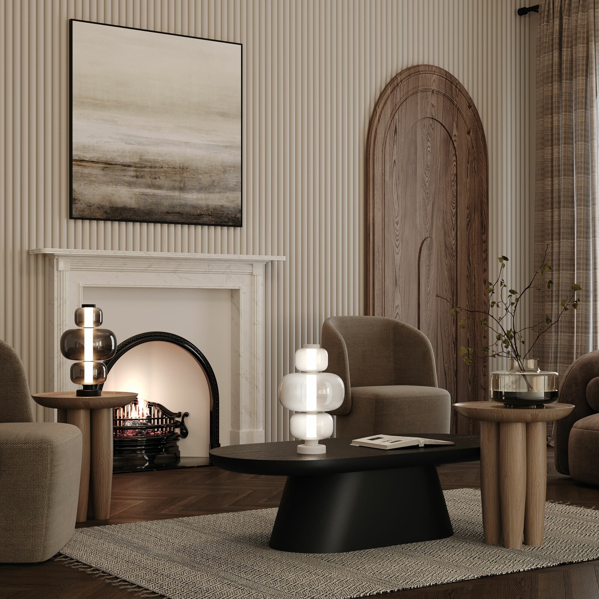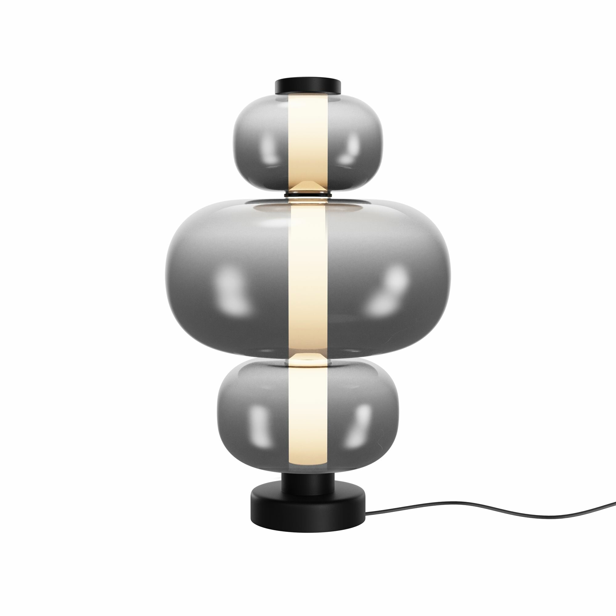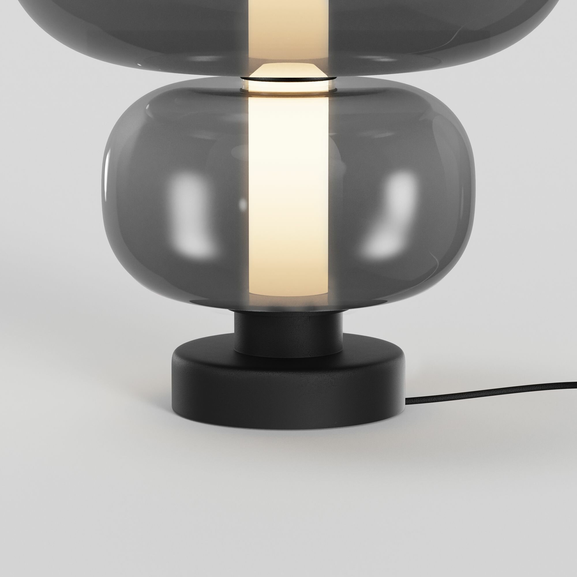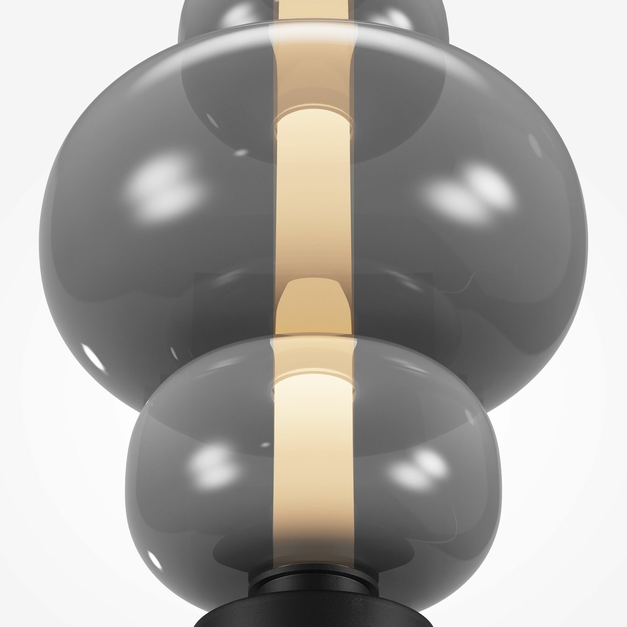 Арматура - металл, цвет - белый, черный. Плафоны окрашены в дымчатый или белый полупрозрачные цвета. В плафон установлен LED-источник света с мощным световым потоком. Цветовая температура — 3000К, угол рассеивания — 120 градусов. Внутренний рассеиватель из полупрозрачного акрила создает мягкое свечение. Предусмотрена функция диммирования: touch-переключатель обеспечивает плавное бесступенчатое управление.